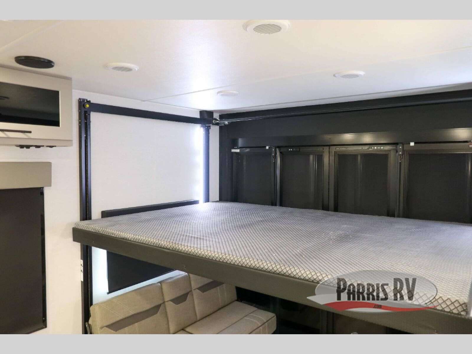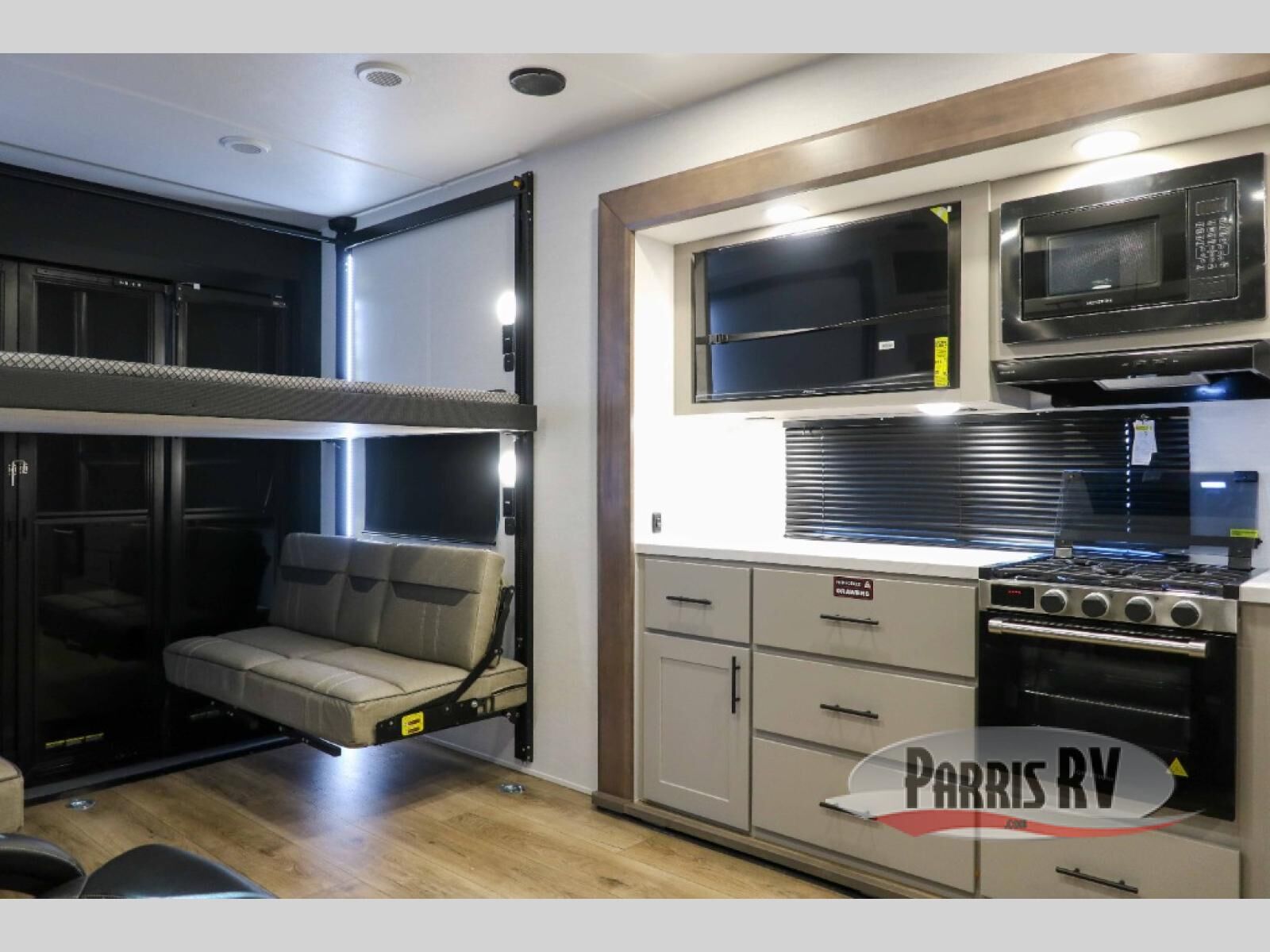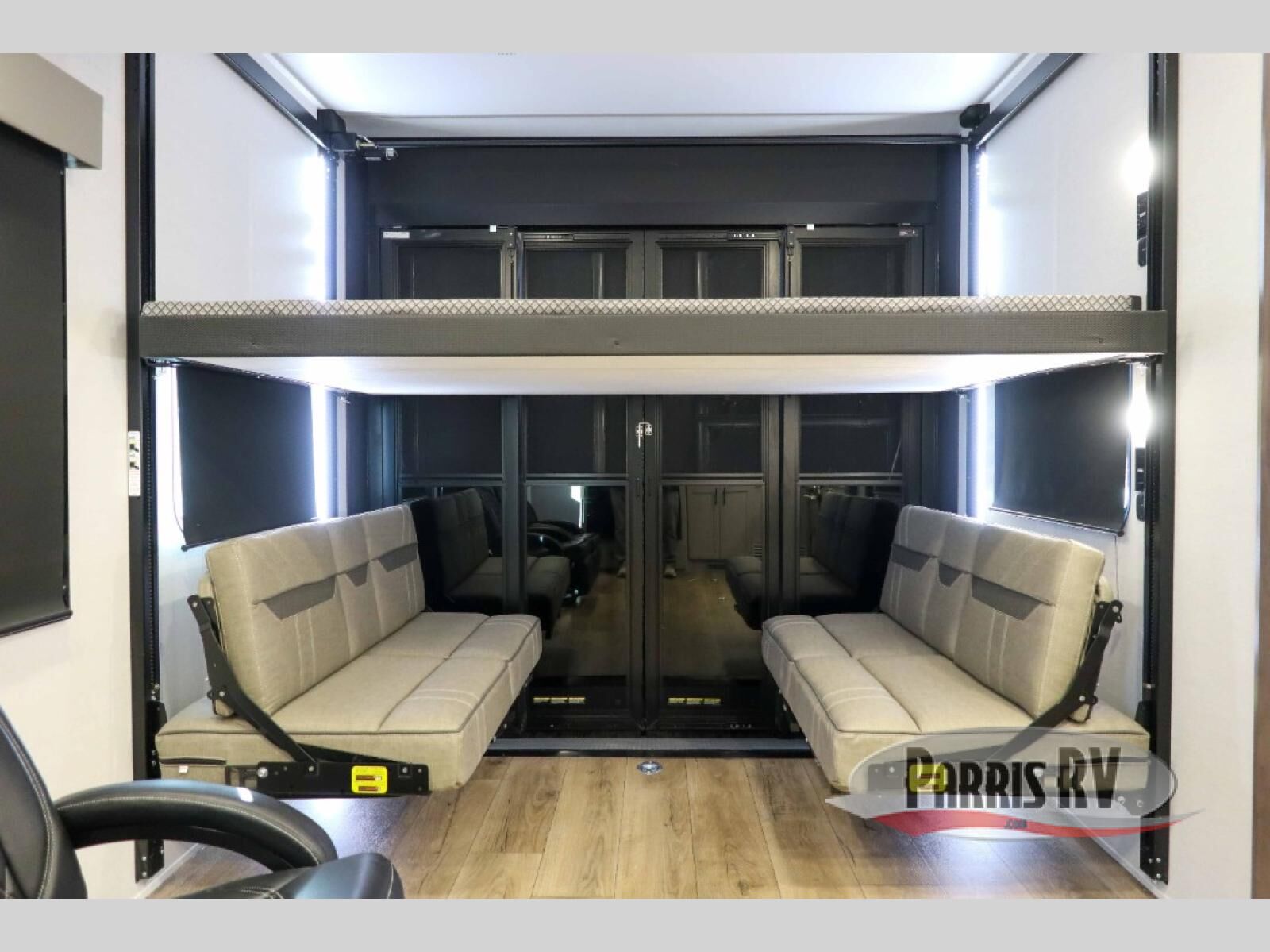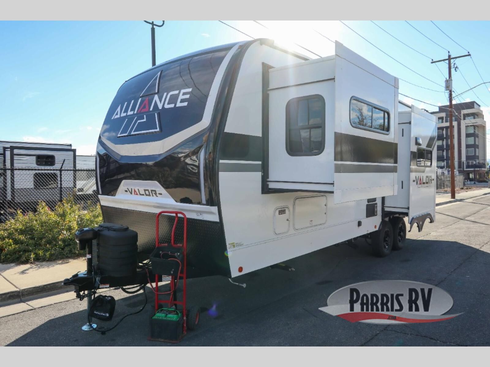 With any Valor All-Access toy hauler by Alliance RV, you will be getting a travel trailer or fifth wheel with exceptional features at a great value! There is a painted fiberglass front cap, Mylar reinforced exterior seals, Azdel-backed fiberglass sidewalls, and a walk-on roof with a seamless PVC roof covering for added strength and durability. The 101" wide-body Benchmark chassis means you can bring along your larger toys, and the multipoint tie-down system will keep your toys safe and secure on the way to the campground. All of your power needs will be met with the Masters of 12 Volt Package that includes a 12V JBL sound system and USB charging stations throughout, plus the Off the Grid Pack comes with a 400-watt solar panel, 30-amp charge controller, and generator prep to keep you going all week long. Some of the interior comforts you'll enjoy are commercial grade vinyl flooring with no carpet so you can easily clean up, black cabinetry hardware, residential LED recessed ceiling lights, and so much more!