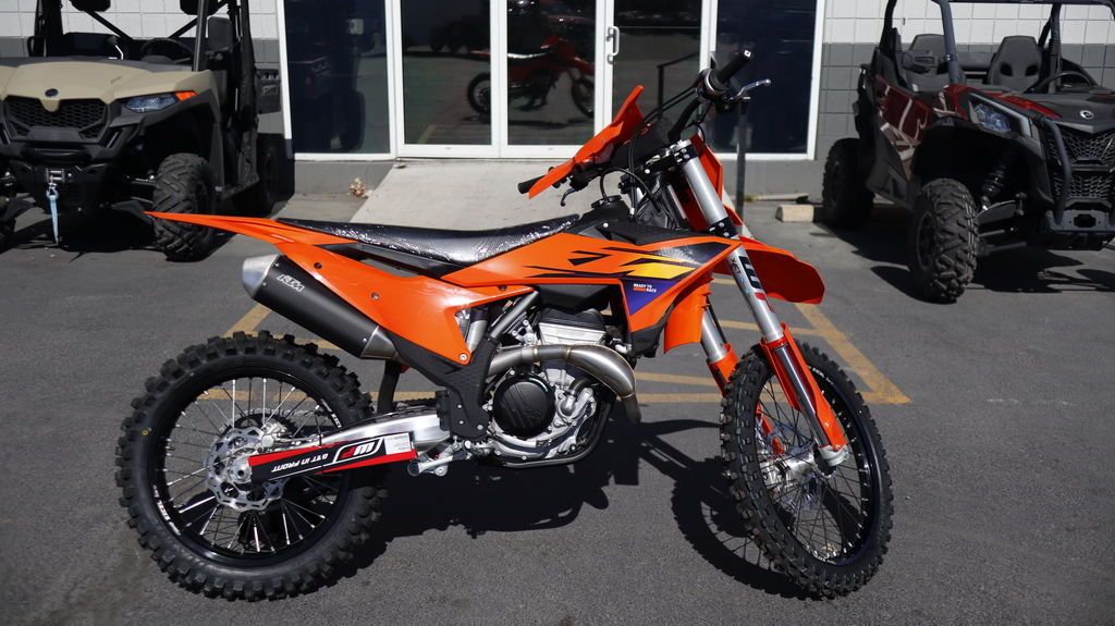 2026 KTM 350 SX-F MIDDLE-GROUND MASTERCLASS With over a decade of racing - and winning - under its seat, the KTM 350 SX-F has long shed its underdog label and proven itself a worthy adversary. Delivering usable power throughout the rev range, unwavering stability at speed, and true championship-winning credentials, the KTM 350 SX-F is once again READY TO RACE. Features may include: Before The Gate Easy Suspension Adjustment As always, the suspension boasts an easy tool-free setup at both ends, ensuring you chase down the podium in total control. On the rear, a hand-adjustable dual compression option allows riders to adjust high- and low-speed settings in a matter of seconds. The forks on the front end are also easily modified thanks to hand-adjustable clickers on the bottom of the fork shoe and top cap. Start Strong More Usable Power Perfectly filling the gap with the KTM 250 SX-F and the powerhouse KTM 450 SX-F, the lightweight KTM 350 SX-F powerplant weighs in at only 60.6lb (27.5 kg). This makes it the ultimate weapon and the easiest choice for power to weight options. Calm Under Fire Absolute Control Get ready for a full-on berm assault. The KTM SX and SX-F machines received major frame updates directly from KTM Factory Racing efforts. For starters, the area around the rear shock mount is streamlined, with engine mounts and cut-outs for improved chassis flex. The front area of the frame has an optimum wall thickness with renewed engine mounts. Hit The Big Stuff WP XACT Fork Let's get the technical parts out of the way first; the 48 mm WP XACT AER forks fitted to the KTM SX and SX-F line-up features a capsulated air spring and pressurized oil chamber for progressive and consistent damping, while oil and air bypasses reduce pressure peaks. In combination with the mid-valve damping system, all this provides exceptional feedback and rider comfort. The fork also has settings which not only compliment the frame and rear linkage, but ensures stellar performance at all levels. Speaking of settings, these are easily adjusted via a single air pressure pre-load valve, as well as easy-access click adjusters for compression and rebound. Additionally, the WP air pump needed to adjust the fork's air pressure is provided as standard in the buy-pack. Maintaining Momentum Ground clearance The shock absorber geometry on the KTM SX and SX-F machines gives decent ground clearance for the linkage, with the topology-optimized die-cast footpegs being less susceptible to hooking on deep ruts, and take-offs when scrubbing.