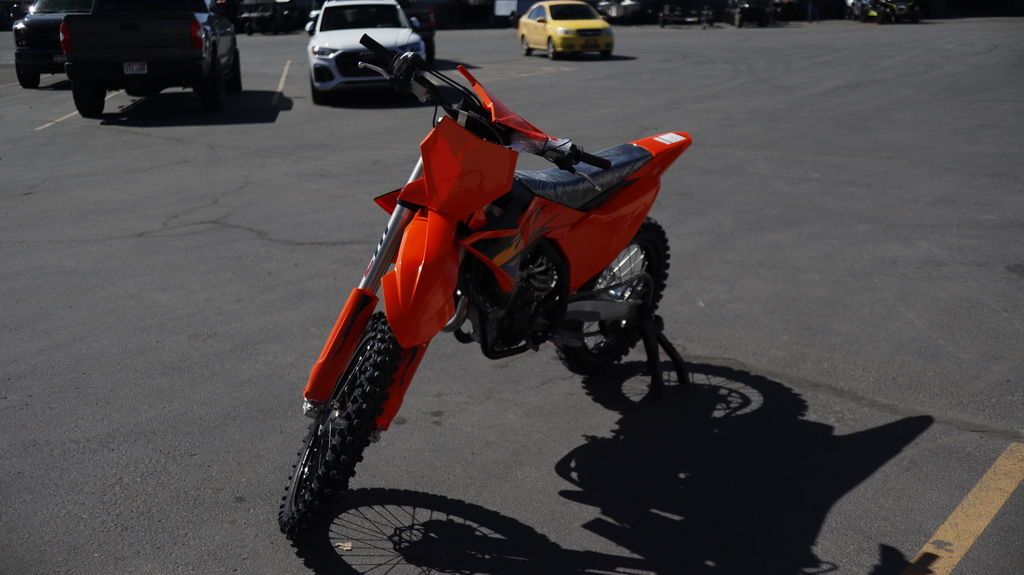 2026 KTM 350 SX-F MIDDLE-GROUND MASTERCLASS With over a decade of racing - and winning - under its seat, the KTM 350 SX-F has long shed its underdog label and proven itself a worthy adversary. Delivering usable power throughout the rev range, unwavering stability at speed, and true championship-winning credentials, the KTM 350 SX-F is once again READY TO RACE. Features may include: Before The Gate Easy Suspension Adjustment As always, the suspension boasts an easy tool-free setup at both ends, ensuring you chase down the podium in total control. On the rear, a hand-adjustable dual compression option allows riders to adjust high- and low-speed settings in a matter of seconds. The forks on the front end are also easily modified thanks to hand-adjustable clickers on the bottom of the fork shoe and top cap. Start Strong More Usable Power Perfectly filling the gap with the KTM 250 SX-F and the powerhouse KTM 450 SX-F, the lightweight KTM 350 SX-F powerplant weighs in at only 60.6lb (27.5 kg). This makes it the ultimate weapon and the easiest choice for power to weight options. Calm Under Fire Absolute Control Get ready for a full-on berm assault. The KTM SX and SX-F machines received major frame updates directly from KTM Factory Racing efforts. For starters, the area around the rear shock mount is streamlined, with engine mounts and cut-outs for improved chassis flex. The front area of the frame has an optimum wall thickness with renewed engine mounts. Hit The Big Stuff WP XACT Fork Let's get the technical parts out of the way first; the 48 mm WP XACT AER forks fitted to the KTM SX and SX-F line-up features a capsulated air spring and pressurized oil chamber for progressive and consistent damping, while oil and air bypasses reduce pressure peaks. In combination with the mid-valve damping system, all this provides exceptional feedback and rider comfort. The fork also has settings which not only compliment the frame and rear linkage, but ensures stellar performance at all levels. Speaking of settings, these are easily adjusted via a single air pressure pre-load valve, as well as easy-access click adjusters for compression and rebound. Additionally, the WP air pump needed to adjust the fork's air pressure is provided as standard in the buy-pack. Maintaining Momentum Ground clearance The shock absorber geometry on the KTM SX and SX-F machines gives decent ground clearance for the linkage, with the topology-optimized die-cast footpegs being less susceptible to hooking on deep ruts, and take-offs when scrubbing.