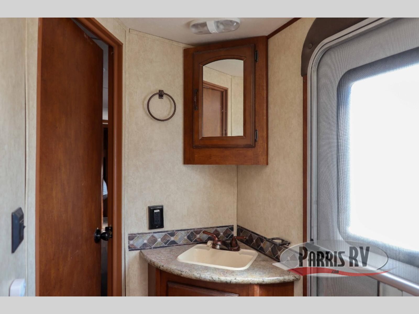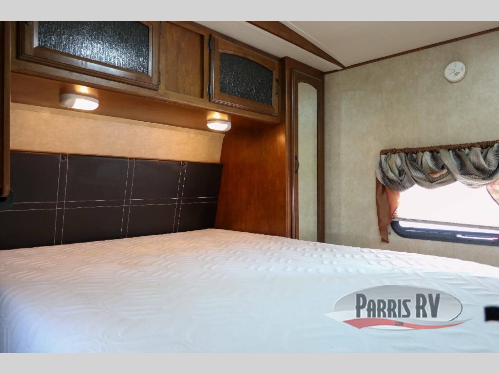 You will find plenty of overhead cabinets throughout the travel trailer as well as a large pass thru storage.