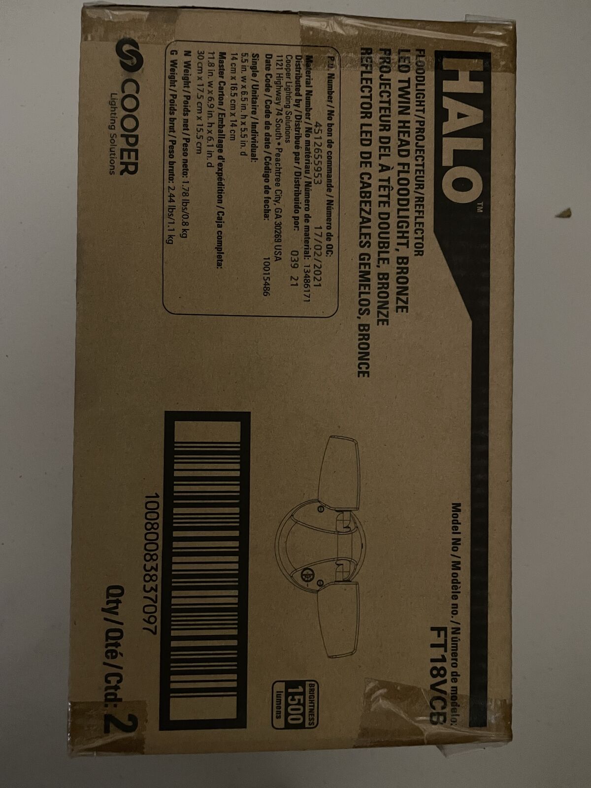 VenmoBrand new in Box. These are great lights that sell for $54 on Amazon. https://www.amazon.com/ESF2A4DB-Flood-Light-Lumens-Bronze/dp/B0FM1PZB61/ref=sr_1_9?dib=eyJ2IjoiMSJ9.mVmyUpOmssd6tfAh9ACIbRpYf_i9S4hBilY9_ItQWRP-pPvQNkj75dtbakg5YsRG66QGPx3FKo7d2EpAkcYXuk5oawnSaaIdjscsnl0CTczftIJJ8qoClbC9PE_57vsciY6N48-l_4l5QBiIsJmvDyDIkWocE8GGK4zGDjbm7Dk3dD2WlNUlge0kDPCmJ7Soja1GYvKtneucallVCJguc1bmkGa0SylEYu2YzALMZJT1yUu6Gw5dS_U1bNG1zohpICLvCljBPbIiSJHt94o0mz3E8SQ8RpU5IrlDFeilBGs.fJFpNuAvXl4hRW5rdWACZP9SR3LjCVzavghuwy8q9tQ&dib_tag=se&hvadid=664728798846&hvdev=c&hvexpln=0&hvlocphy=9029749&hvnetw=s&hvocijid=11821445382525588374--&hvqmt=e&hvrand=11821445382525588374&hvtargid=kwd-1602123197405&hydadcr=16500_13575619&keywords=halo%2Btwin%2Bhead%2Bflood%2Blight&mcid=66b2440e13dc33c08adb2457f5c1f886&qid=1760190354&sr=8-9&th=1
