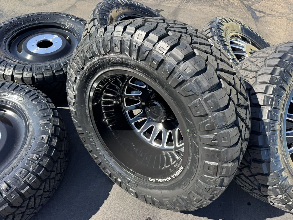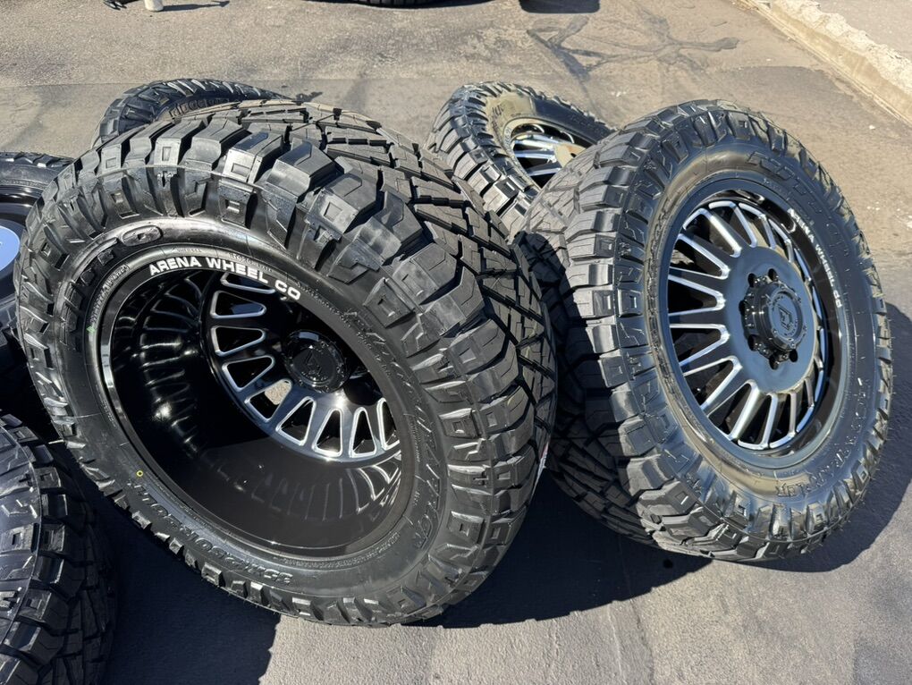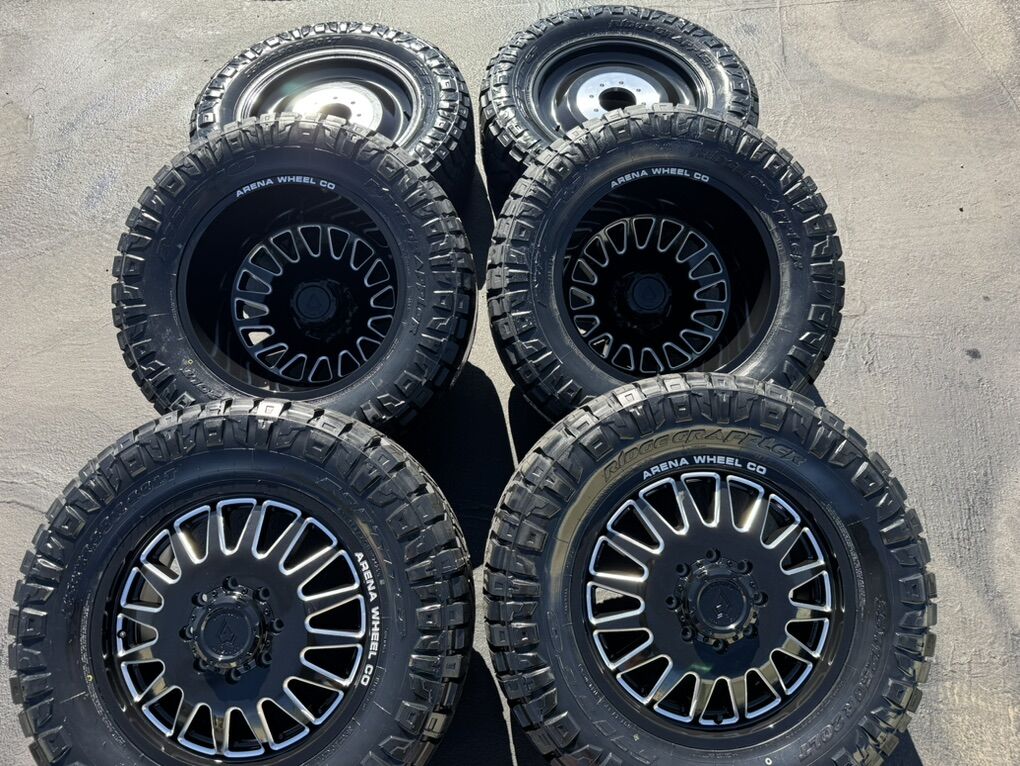 Brand new matching set of 6 wheels and tires. Never mounted on a truck. Stickers still on everything.