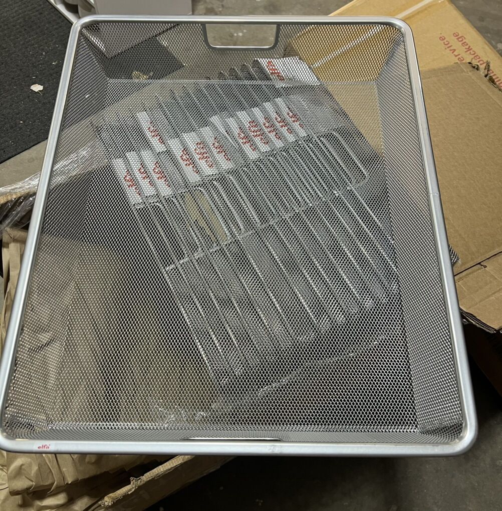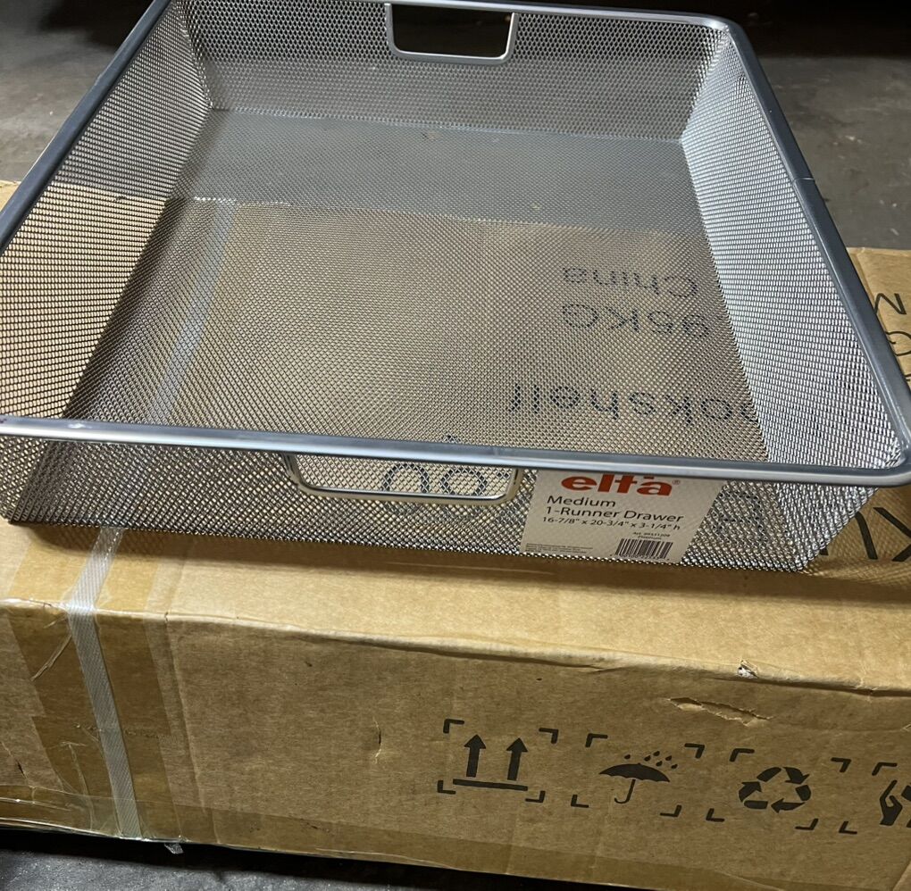 Elfa Mesh Drawers fit perfectly into the appropriate size Elfa Drawer Frame to create an Elfa Mesh Drawer Unit. The Medium width can also be use in an Elfa Décor Drawer Frame. The tight mesh material and closed corners of these drawers prevent smaller items from falling though without the use of Drawer Liners. Use them to store almost anything: clothing, linens, office supplies, kitchen utensils, packaged foods or toys.