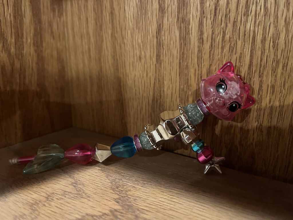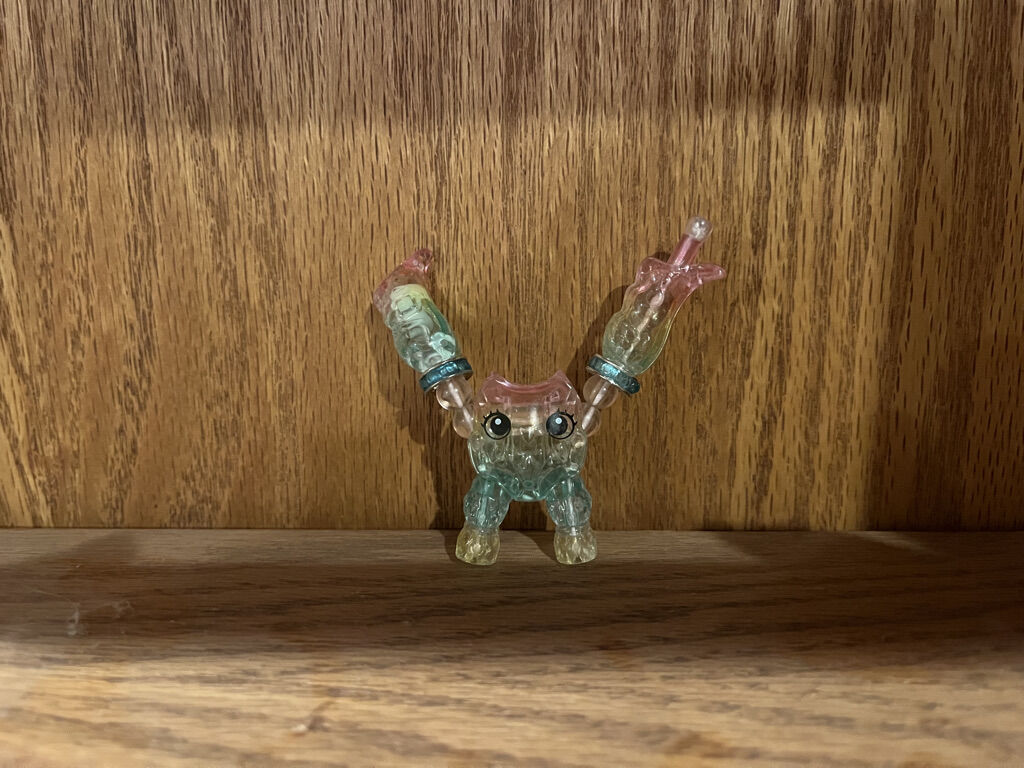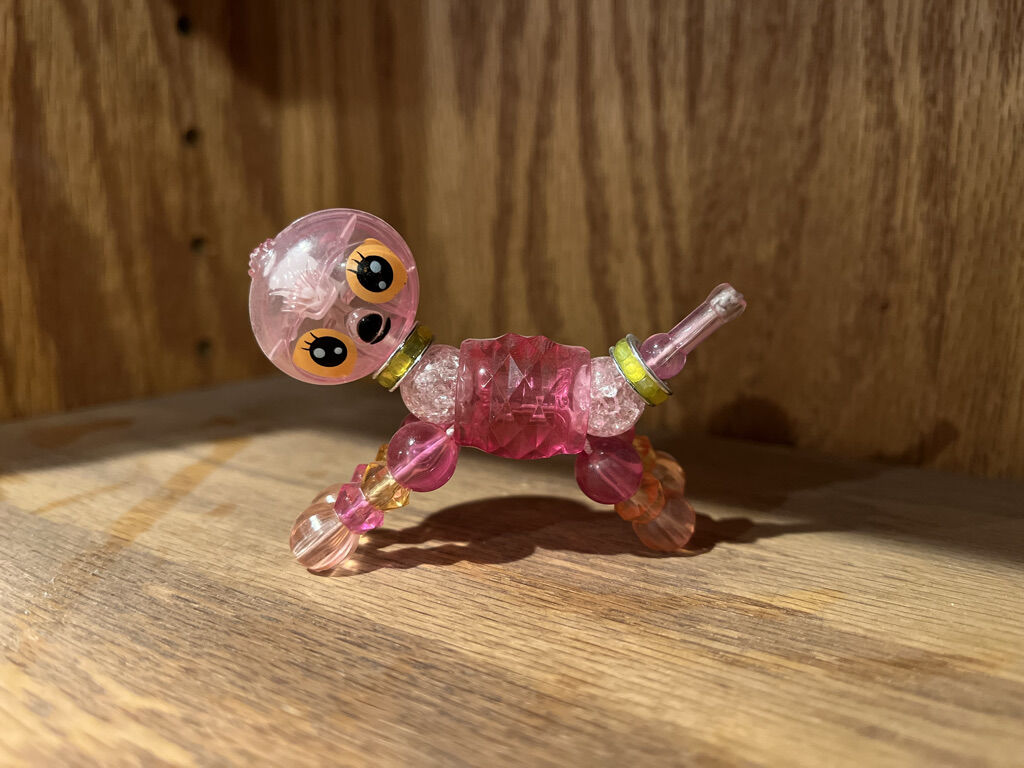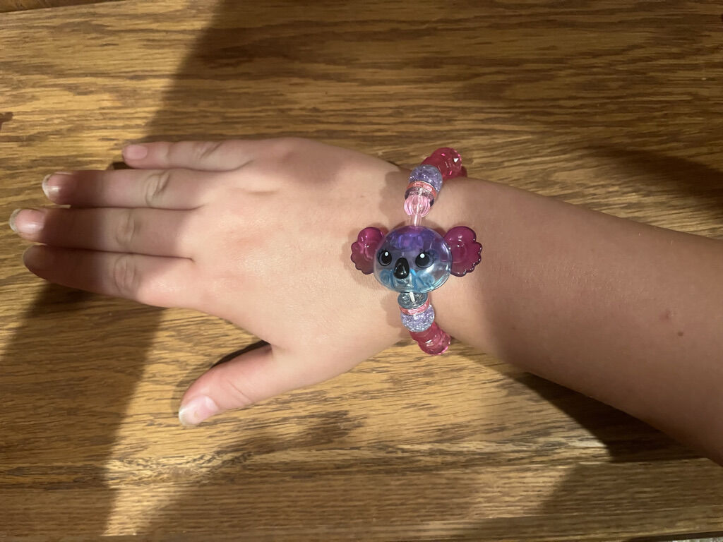 All regular sized. Also includes one lama, butterfly, sloth, two pandas, mouse, two deer, an owl, and three elephants to name a few. One deer is fuzzy and soft. The transform from a bracelet to a pet by twisting. The regular sized pet becomes a bracelet. All are included in the price.