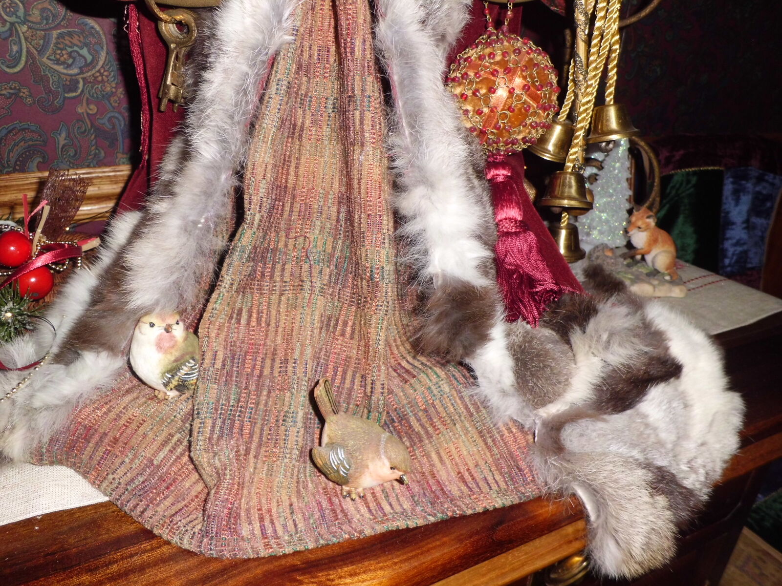 Custom made Santa Claus - one of a kind. He's quite unique. If you look at him long enough, you'll see something new each time. I originally paid $900 for him and have safely stored Santa until Christmas. Santa has been displayed in several different places throughout our home. Our Dining Room has become the favorite in a couple of places. It's fun to decorate around him with other accessories. But, he has been in the living/great room several times, hallway, and even the Master Bedroom once. He's a conversation starter.