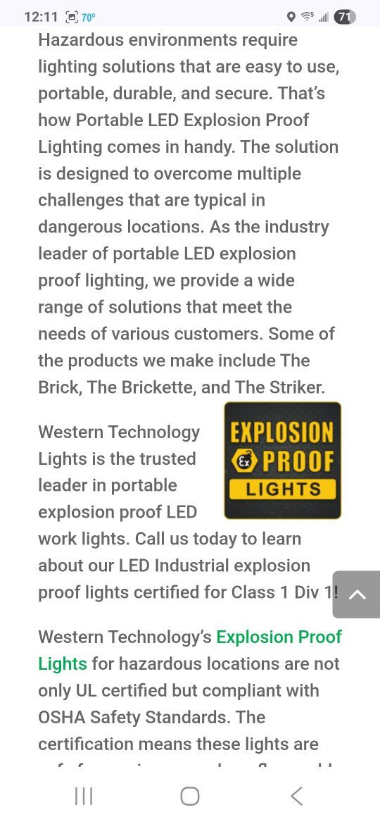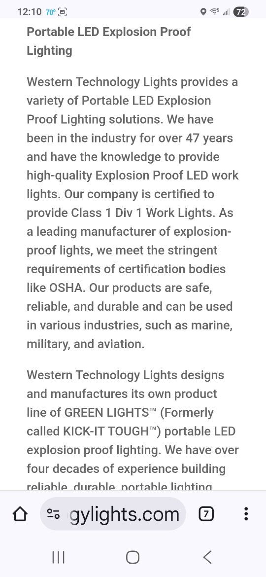 PayPalThis listing is for a new Western Technology 9610A Explosion Proof Brick LED Work Light. Great for spray coating inside storage tanks and other hazardous work areas. This unit is new and comes with a Gorilla storage case. See pics for hazards ratings.
