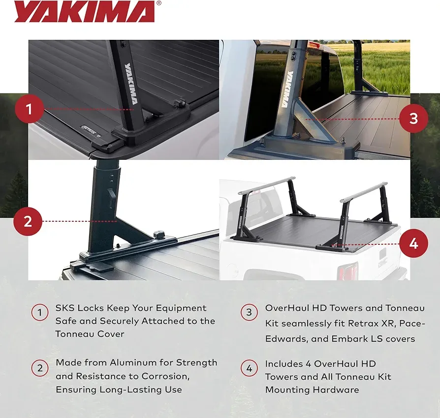 Yakima Truck Bed Mount Tower Compatible w/Retrax XR Series, Pace-Edwards, & Ford Embark LS Tonneau Cover, Cargo Towers Only, Overhaul HD Tonneau Set- Mounting pads (Yakima Tonneau Kit 1, and 55" Yakima HD crossbars for sale seperately or included for right buyer/offer.)