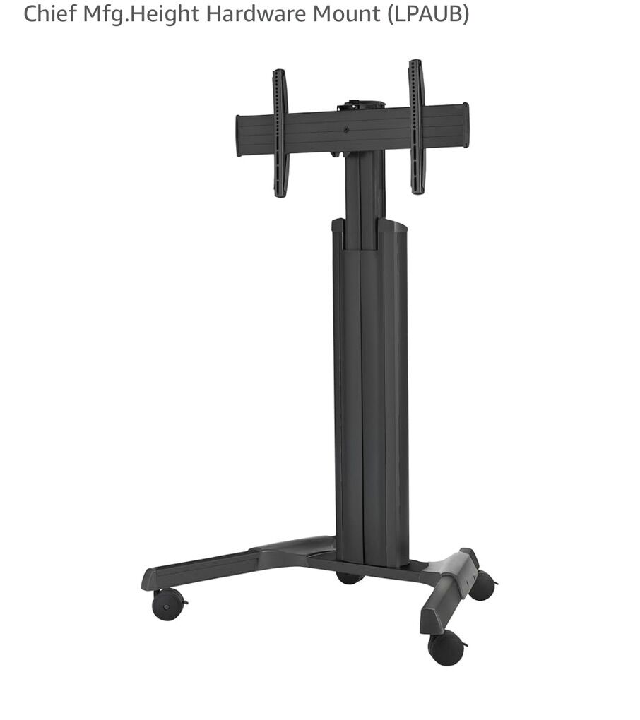 This mobile Fusion cart incorporates rounded edges and sleek Features to give the cart a softer professional feel that fits well in corporate and classroom environments. The height can be adjusted by one person via hand or 1/2 Hex bit on a power drill.