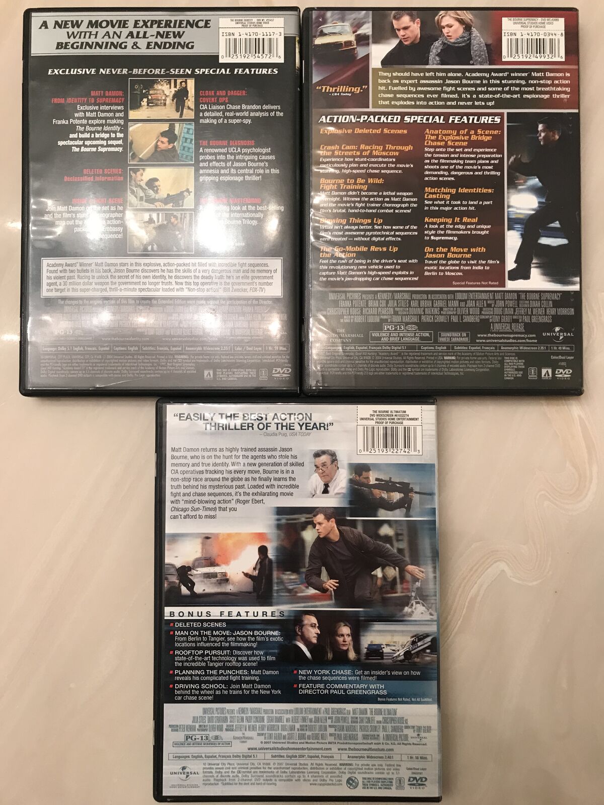 The Bourne Identity extended edition / Supremacy / Ultimatum (3 DVDs, 2002-2007) Widescreen