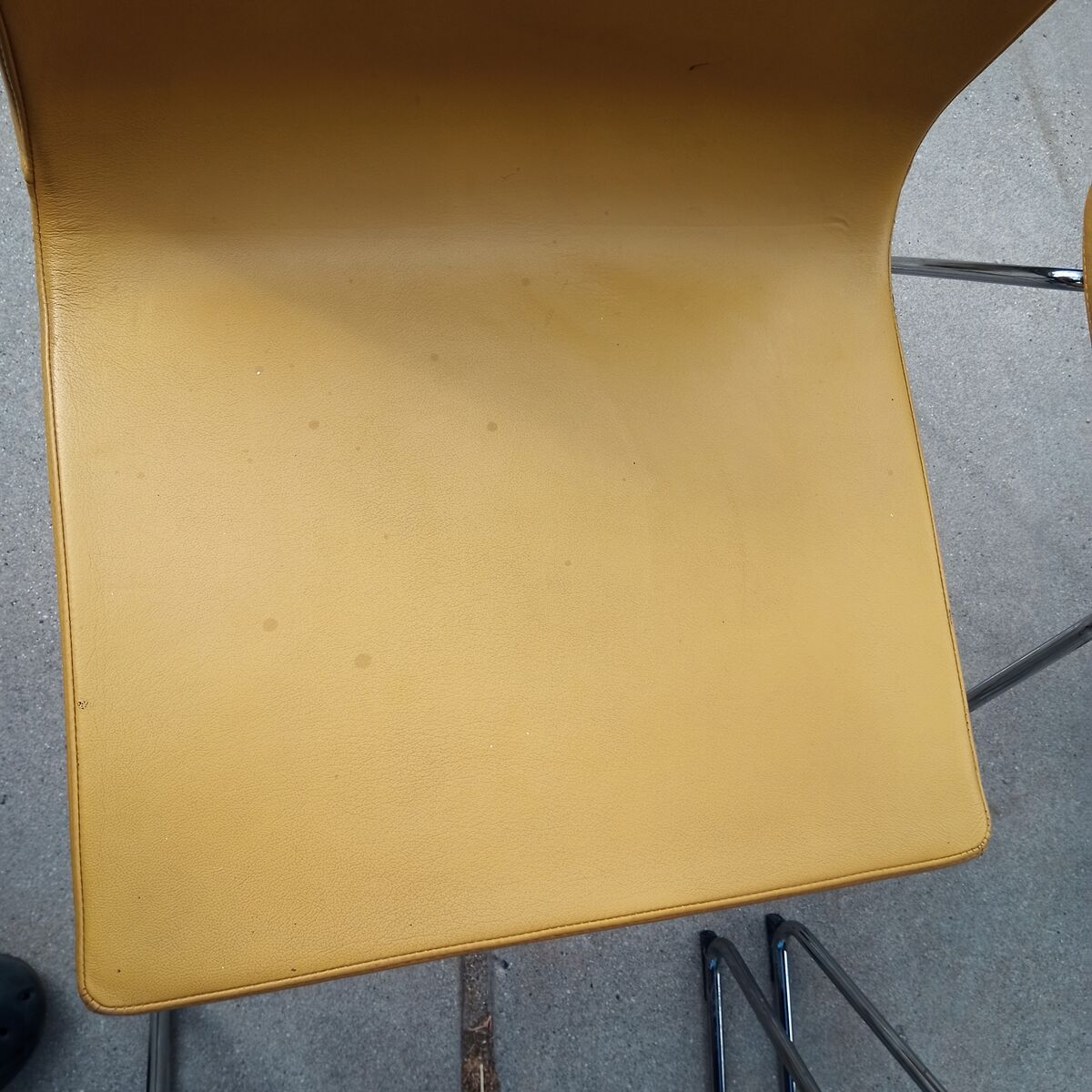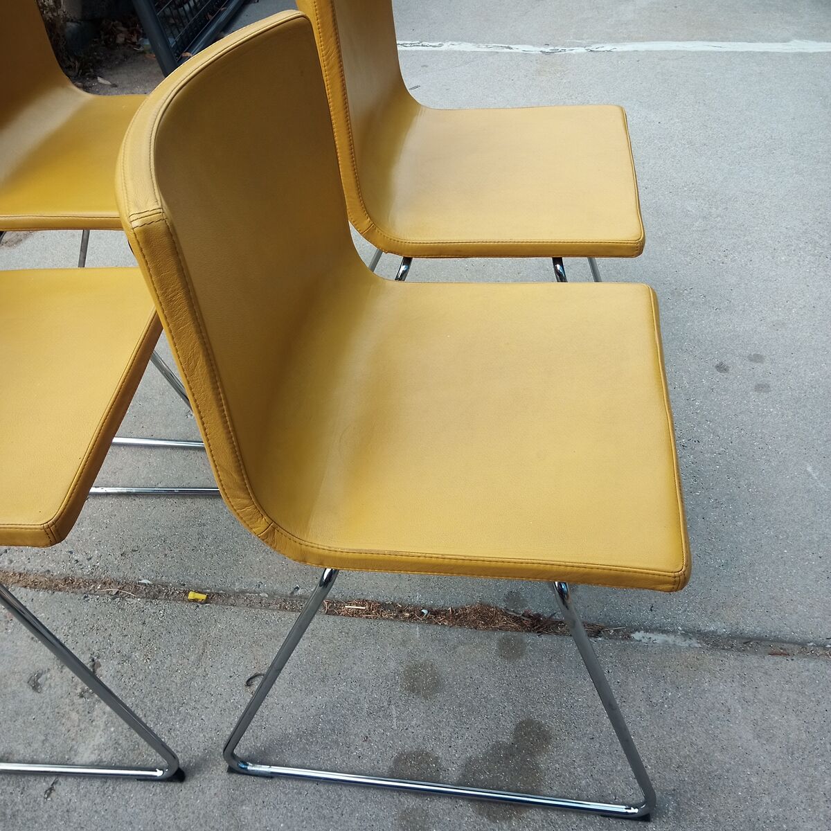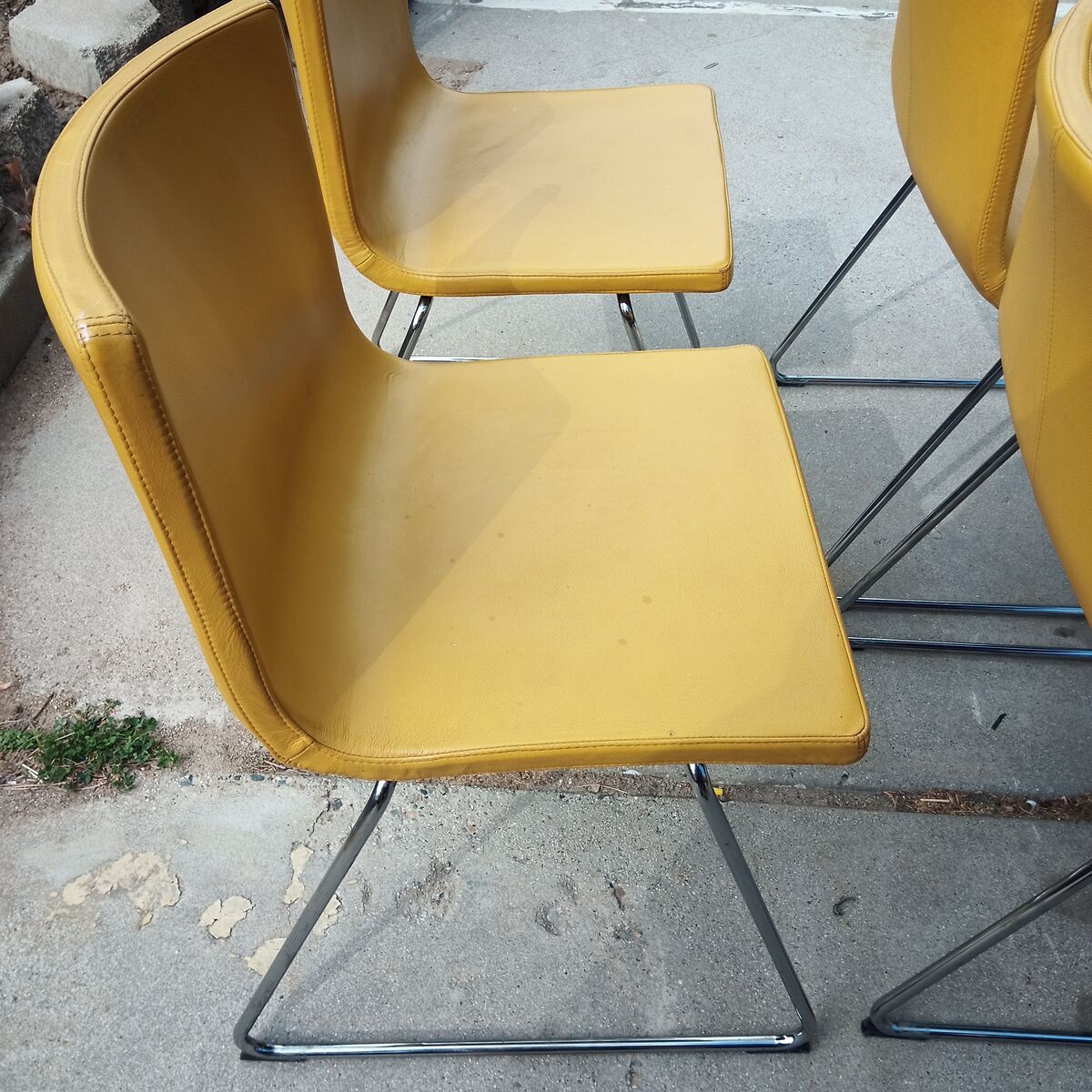 Set of 4 mustard yellow leather and chrome mid century dining chairs