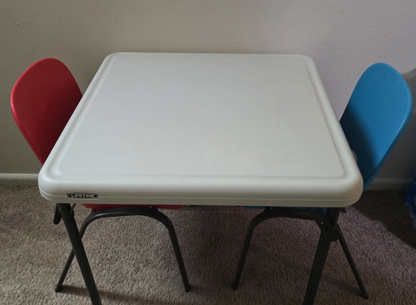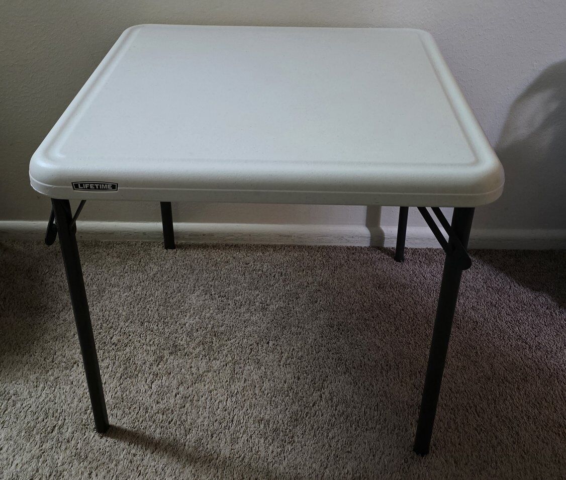 Lifetime Childrens Square Folding Table, Indoor/Outdoor. Used excellent like new with 2 chairs. Cash only please
