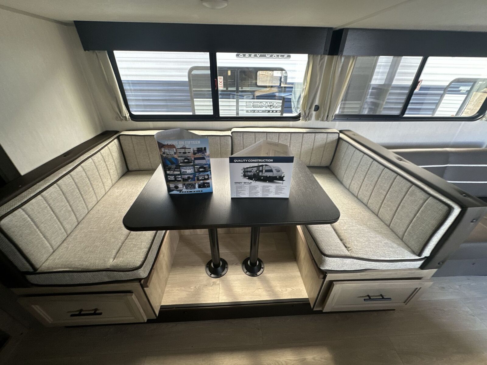 Forest River Cherokee Grey Wolf travel trailer 26DBH highlights: Double-Size Bunks Dual Entry Walk-In Pantry U-Shaped Dinette Outdoor Kitchen Come on inside this Cherokee Grey Wolf travel trailer and experience the convenience of a smooth flow of traffic in and out with two entry doors. The rear door leads into a full bath which is great for accessibility. Once inside, you will notice the large U-shaped dinette and the sofa which sit on the slide and create a spacious footprint for moving about, as well as great places to play games and socialize with your friends and family. A walk-in pantry provides plenty of storage allowing you to stock up on your favorite snacks and dry goods for your family adventure. At night, there is sleeping space for everyone between the double-size bunks and the RV king bed, plus the furniture. The Cherokee Grey Wolf by Forest River feature distinctive features, at-home comforts, and durable construction materials so you can enjoy your RV for years to come, plus they are outstandingly affordable! You can choose between travel trailers, toy haulers, and even fish houses, depending on the camping style you prefer. You'll find many convenient amenities both inside and outside, along with comfortable seating and sleeping spaces, and plenty of storage for your personal belongings and camp gear!