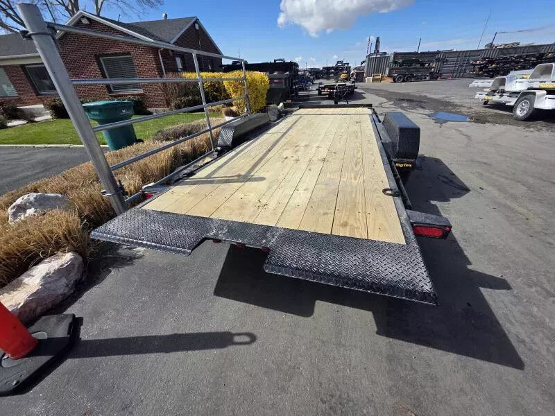 STOCK #: BTX0190 MANUFACTURE: Big Tex Trailers MODEL: 7X20 16TL Equipment Tilt Flatdeck Trailer SPECS WIDTH: 7' LENGTH: 20' DOOR(S)/RAMP(S): Tilt Deck WEIGHT: 4,080 lb GVWR: 17,500 lb PAYLOAD: 13,420 lb AXLE(S): Tandem 8000 lb Premium Axles TIRES: ST215/17.5 COUPLER: 2 5/16"\