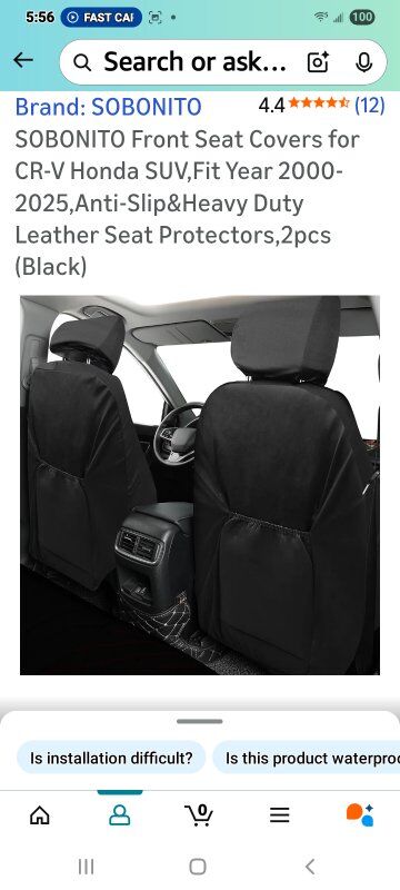 Brand-SOBONITO Color-Black Material-Faux Leather Auto Part Position-Front UPC768556991141 Size Custom fit: CRV Seat Covers Fit for year 2000-2025, Premium elegant lines stitched customized Material: Heavy Duty leather provides a luxurious look and durability, and back side anti slip silicone, all season use Compatible Airbags: The airbag hole has been reserved,keeping you comfortable during long drives Install: Follow installation process,quick and simple to install. just about 10 minutes can install it Unique design:it have a unique visual design,it protects the original seats looks pretty and anti-dirty.