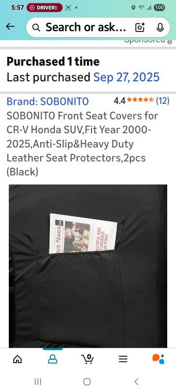 VenmoNew in Package! Honda CRV Seat Covers 2000-2025 (FRONT)