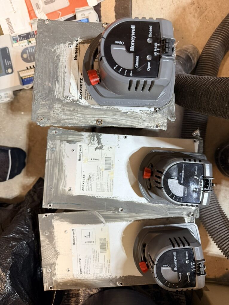 Honeywell Zone board HZ432 Discharge air temp sensor 24v power supply 3 zone doors with motors 1-ZD12X8TZ 2-ZD8X12TZ