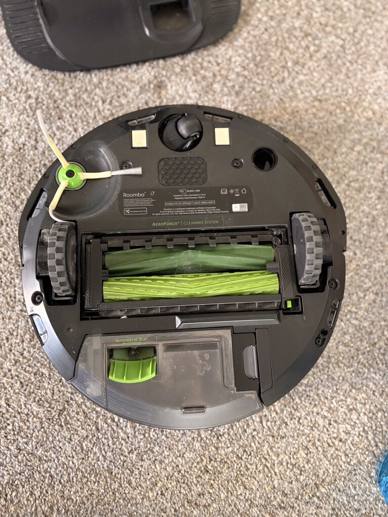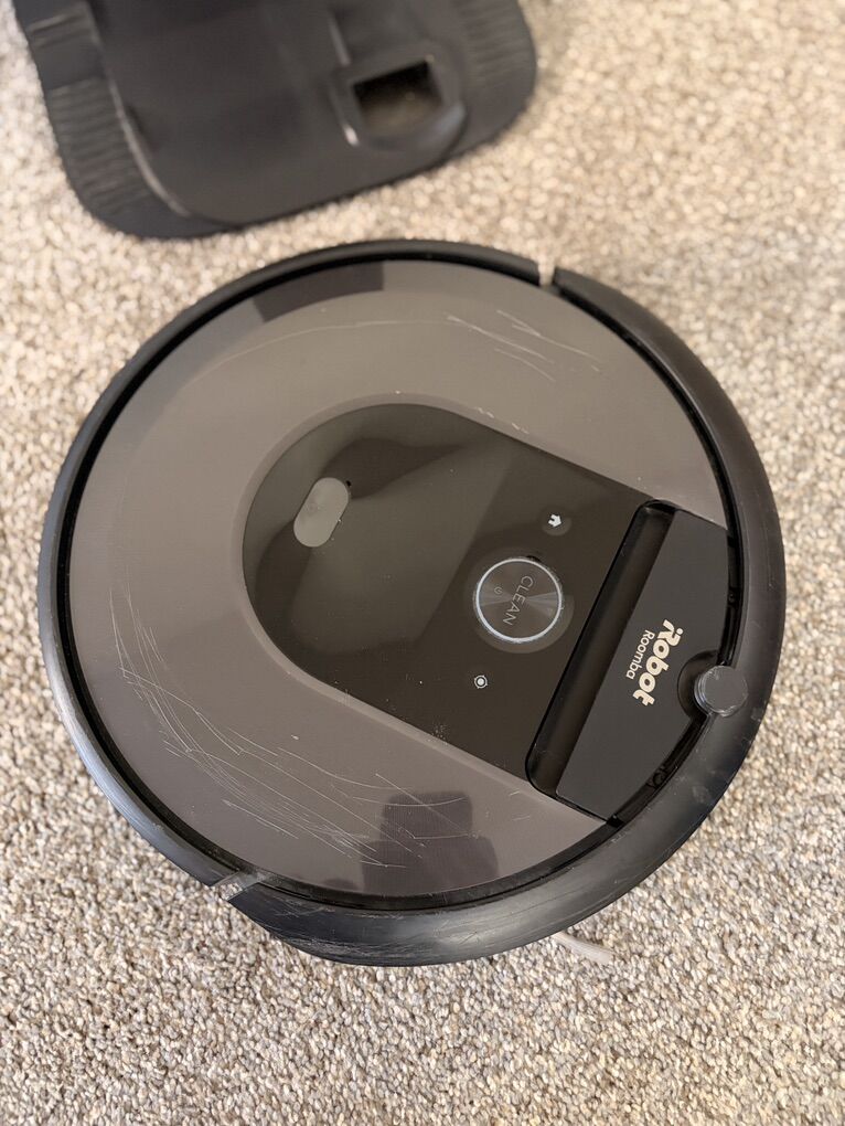 Works just fine. Included self cleaning base as well as replacement parts to use as needed. There are some scuffs on the top of the rooms from it trying to clean under some tight areas but zero impact to performance. Price has been reduced due to cosmetic nature (the scratches).