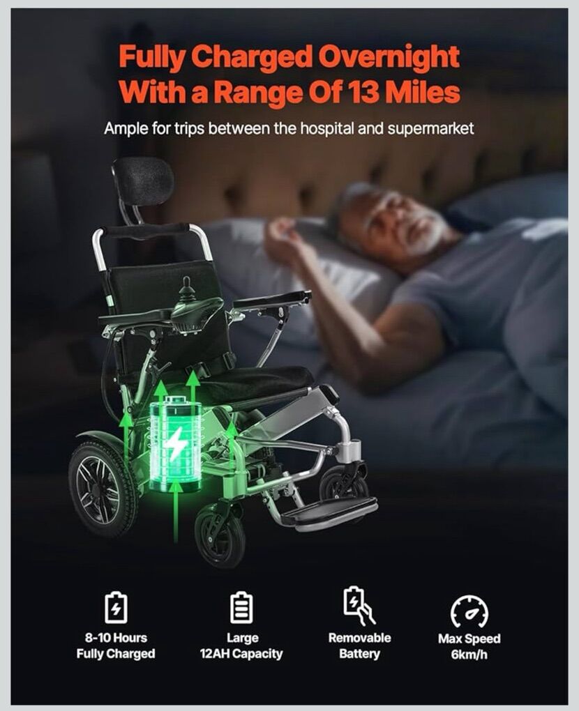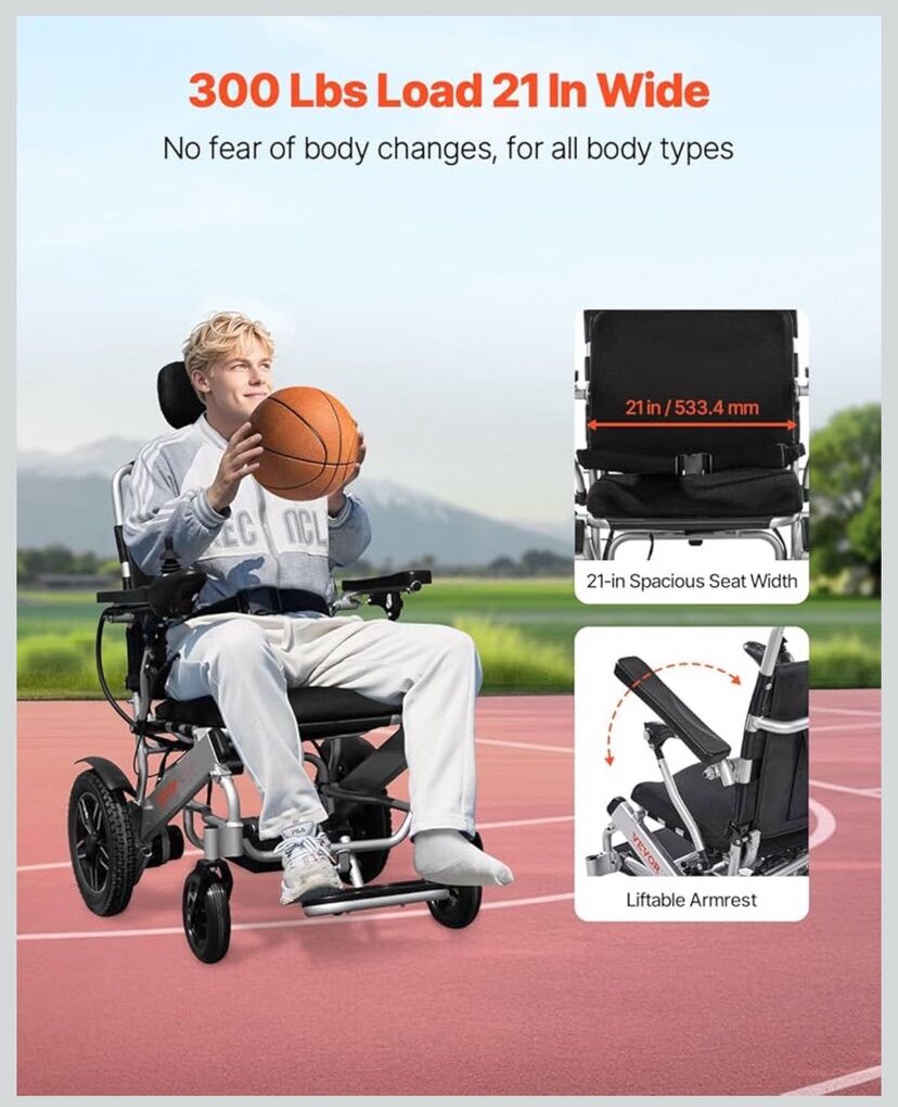 VEVOR Electric Wheelchair for Adults, 300lbs Capacity with Adjustable Backrest, Foldable Lightweight Motorized Wheelchair,13-Mile Range,All-Terrain Powered,Portable 21” Seat for Seniors & Disabled