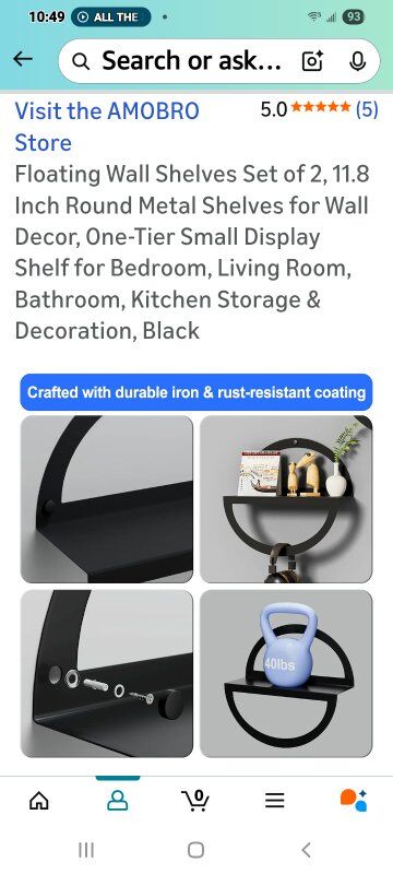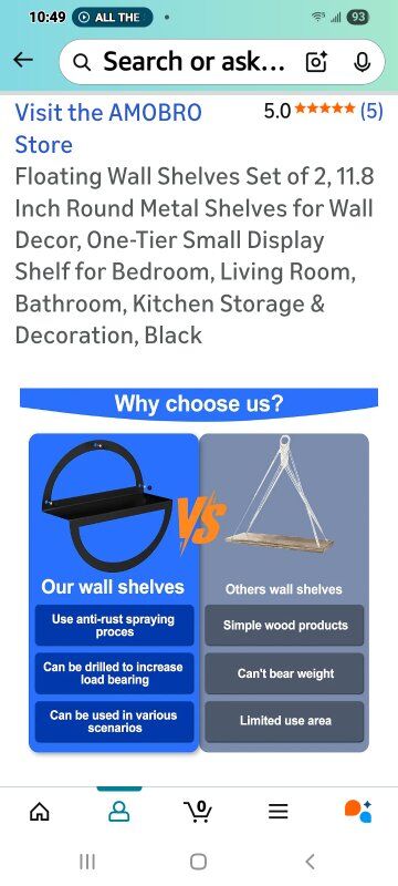MaterialStainless Steel Mounting TypePunching installation Room TypeLiving Room Shelf TypeMetal Number of Shelves20250806 Special FeatureTrees, Wreaths & Garlands DURABLE & RUST-RESISTANT – Crafted from high-quality iron with a premium anti-rust coating, these floating wall shelves for bedroom, living room, bathroom, or kitchen provide long-lasting durability and reliable load-bearing capacity. SPACE-SAVING ROUND DESIGN – 11.8 inch diameter single-tier round shelves with a 3.9 inch width shelf offer compact yet functional storage. Perfect for displaying decor, plants, books, and everyday essentials. EASY INSTALLATION – All mounting hardware and instructions included. Simply mark the wall, drill, and secure the screws to effortlessly install these round metal shelves for wall décor in minutes. VERSATILE & STYLISH – Minimalist modern design fits seamlessly in any home style. Ideal for bedroom, living room, bathroom, kitchen, office, or entryway, these black or white floating shelves add elegance and functionality. SET OF 2 & MULTI-PURPOSE – Includes two 11.8 inch round metal shelves . Great for creating a coordinated look, organizing items, or enhancing wall storage without taking up floor space.