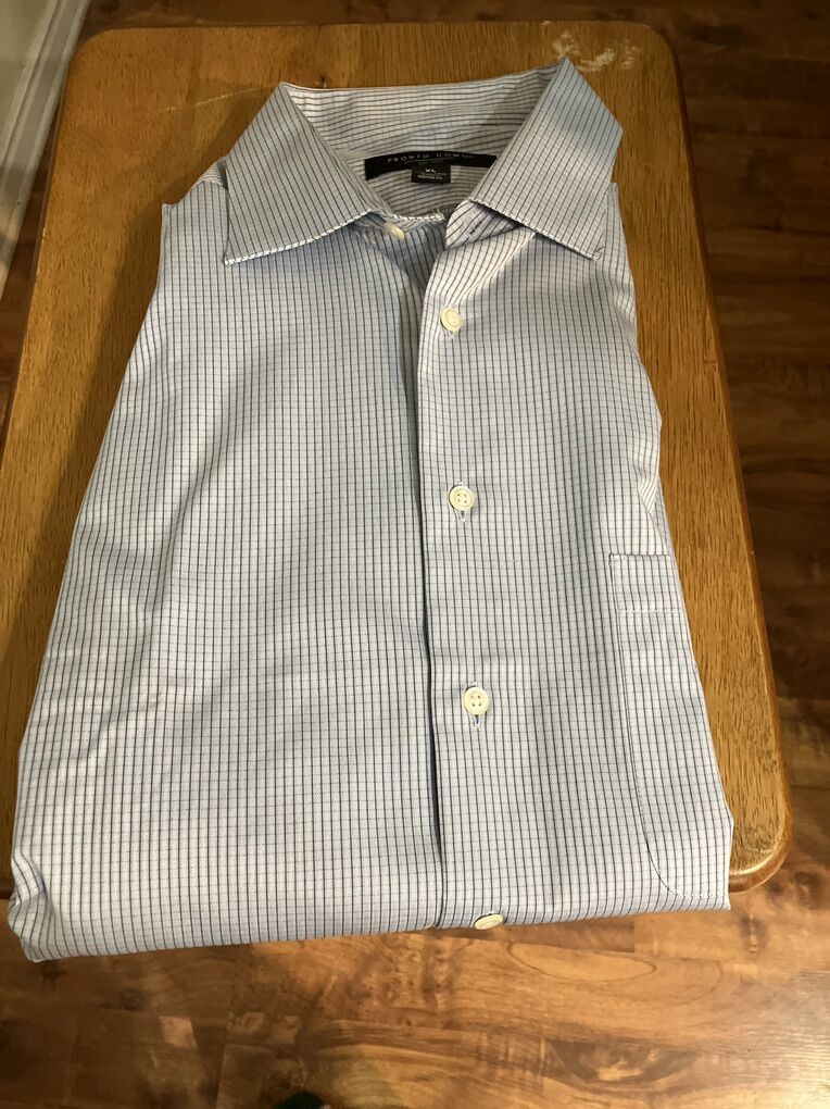 Blue Plaid Pronto Uomo Long Sleeve Dress Shirt 100 % Cotton Size XL Excellent Condition Cash Only Please