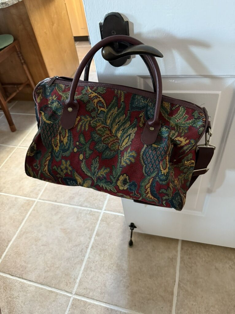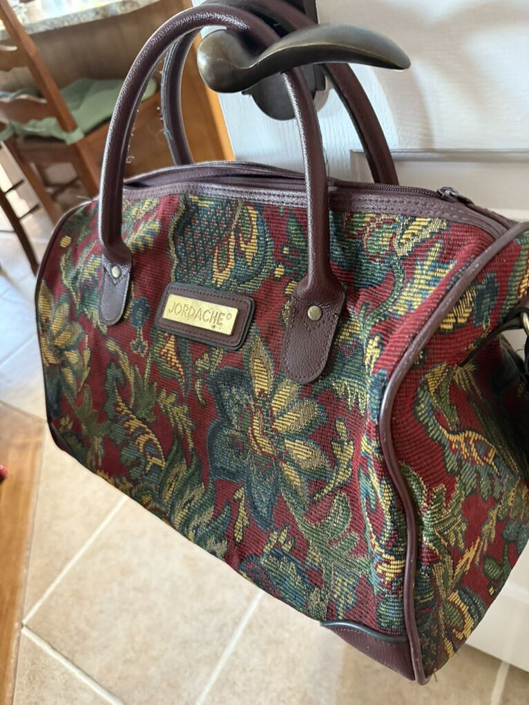 Bag we used for a Mary Poppins carpet bag! 15” long 12” tall without handles
