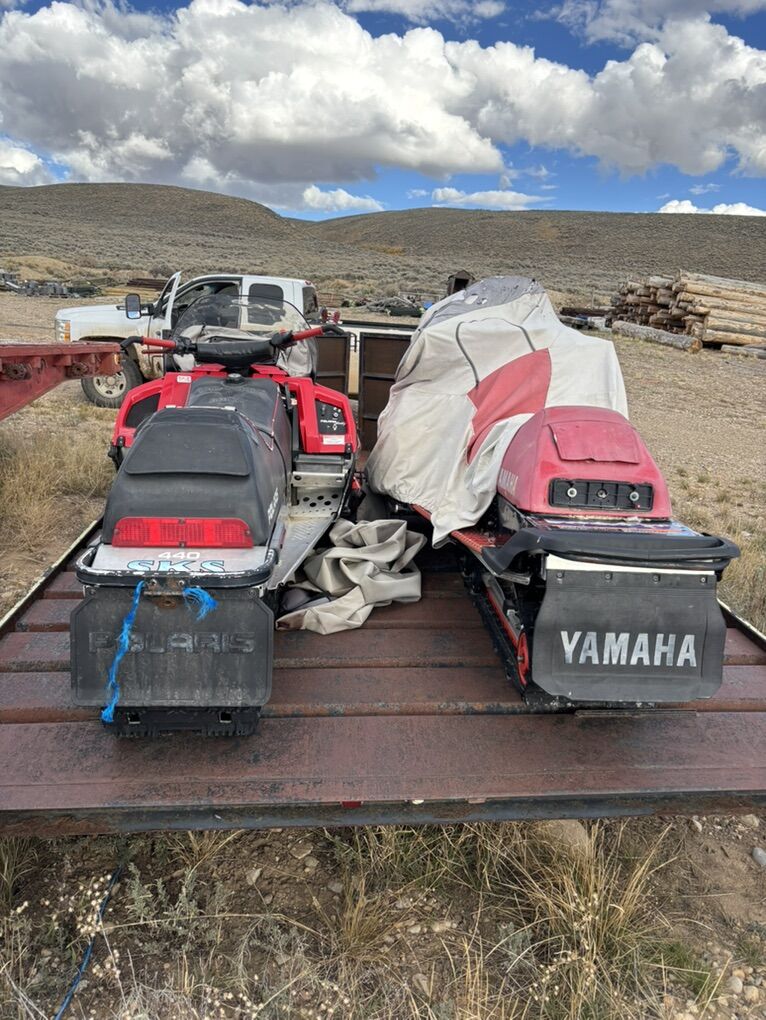 I’m selling trailer and 2 sleds they have sat for 2 years but ran great when I put them up I’m sure they will need a little work but should be ready to roll the trailer front has been redone it is a nice trailer easy to laid on because it is a tilt deck and has drive off ramps The one sled is a 440 in mint condition with new fuel lines and nice motor it is a good sled no tore seats all stock The triple Yamaha 700 is real fun ran good when I put it up new belt should be ready to roll with some work
