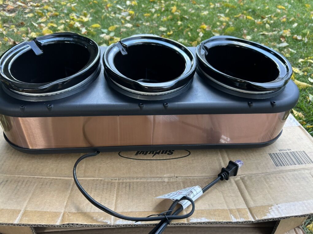 VenmoNew in the box Sunvivi Triple slower cooker 1.5 quart buffet server and food warmer. Oval ceramic pot with stainless steel lids, 3 black spoons and lid rests. Clean smoke free. Cash or Venmo. Pick up from Alpine.