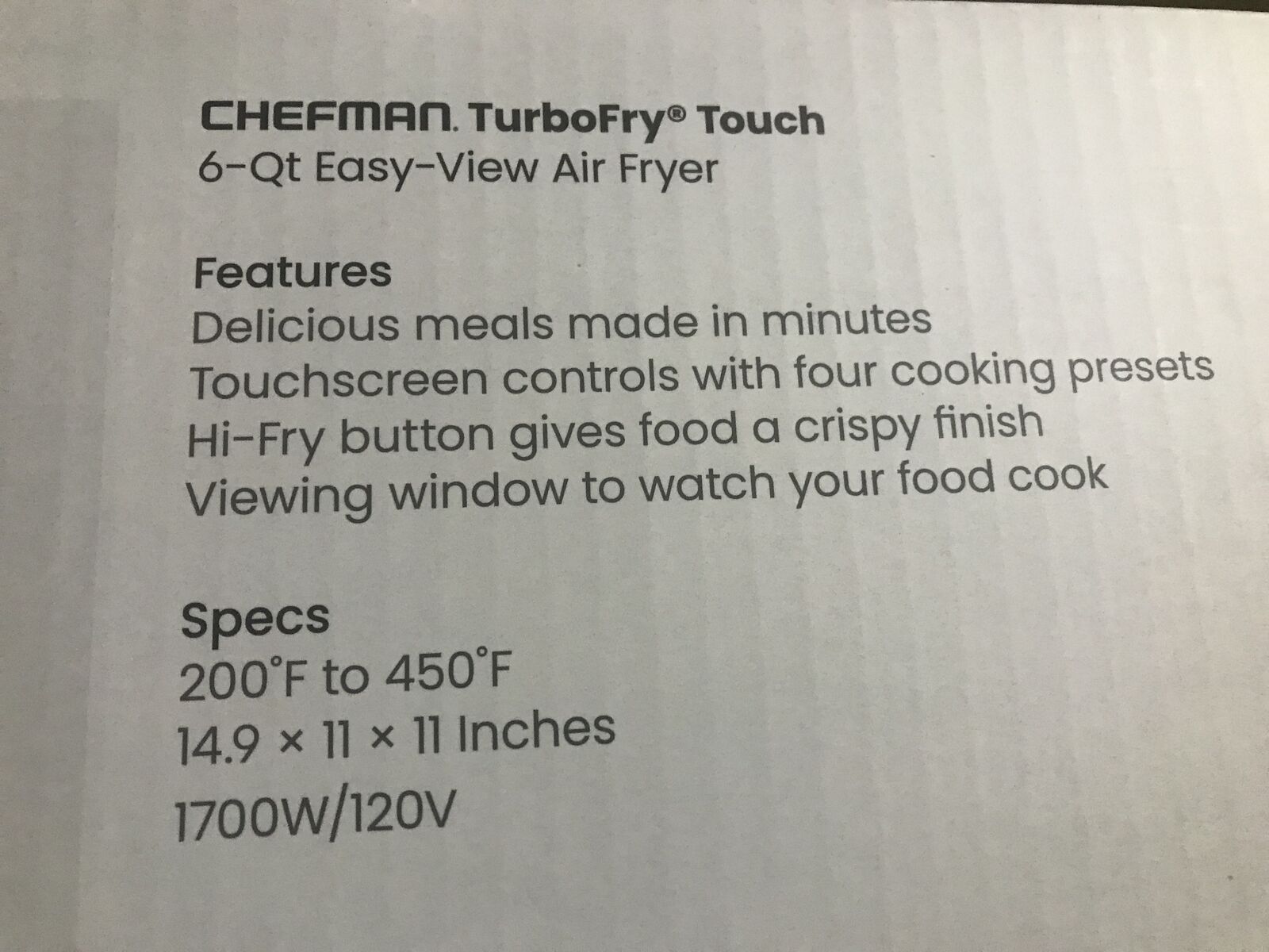 Chefman 6 quart air fryer compact air fryer new inbox
