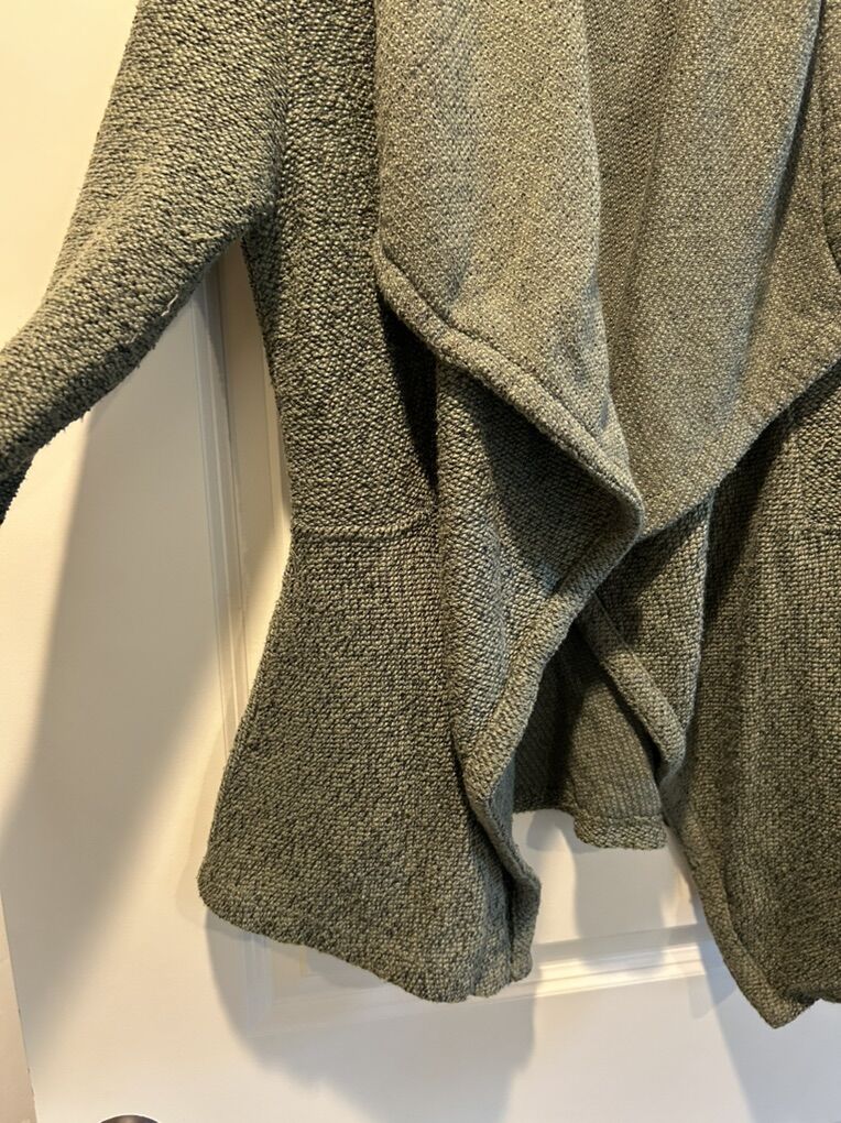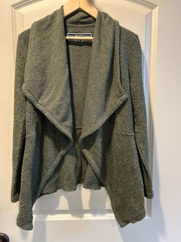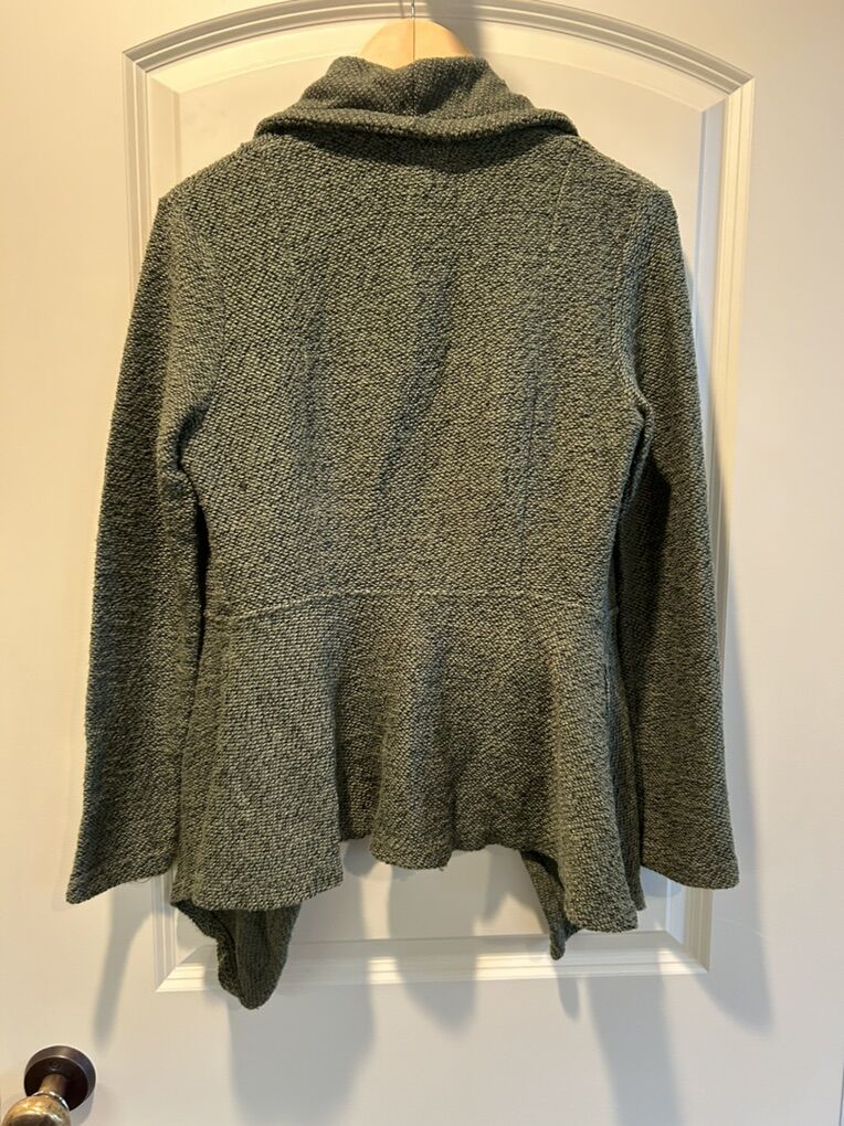 VenmoLike new from BNCI dark green peplum sweater knit cardigan with ultra figure flattering fit. Highlights and defines small waistline. Hides belly area. No flaws. Clean smoke free. Cash or Venmo. Pick up from Alpine.