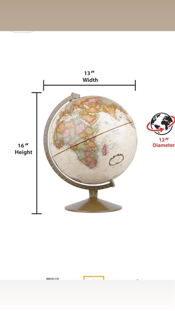 VenmoDecorative World Globe – 12” Diameter (Classic Antique Style)