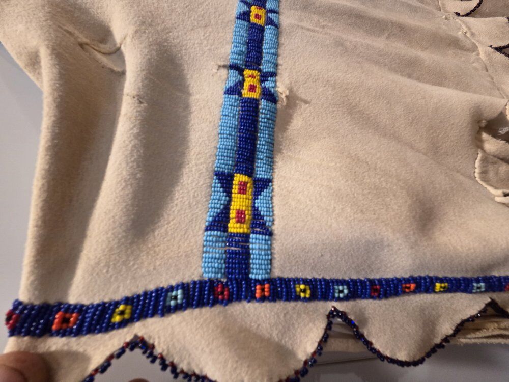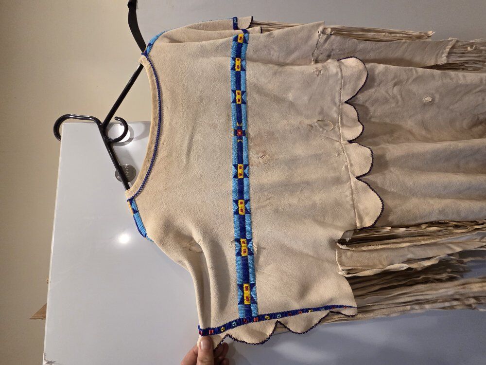 Beautiful one of a kind hand made and hand beaded buckskin regalia dress. Have to see in person. High quality one of a kind custom made. womens size medium