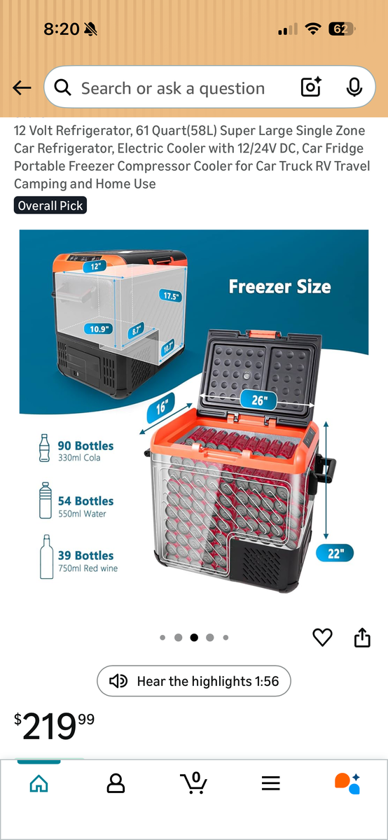 ApplePayBrand new! BLACKHORSE-RACING 12 Volt Refrigerator, 61 Quart(58L) Super Large Single Zone Car Refrigerator, Electric Cooler with 12/24V DC, Car Fridge Portable Freezer Compressor Cooler for Car Truck RV Travel Camping or home. 61 Quarts. 15.94"D x 26.38"W x 21.93"H.