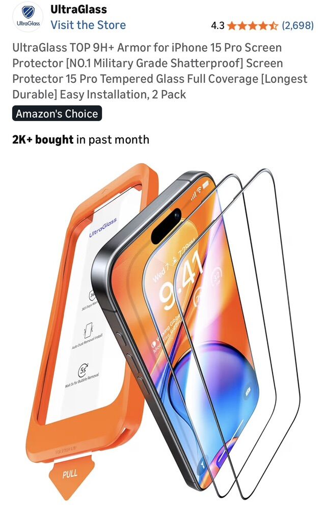 Like new. Was on a 15 pro that sat in a drawer. No drops, scuffs or scratches. Comes with 2 screen protectors (free) new in box.