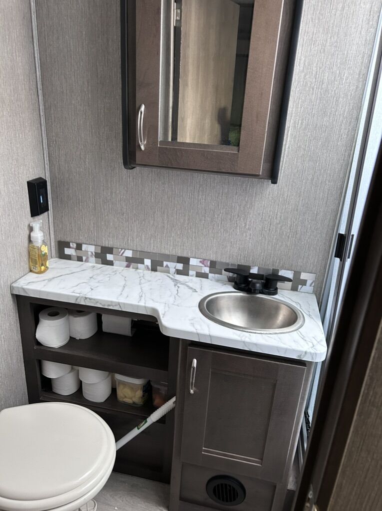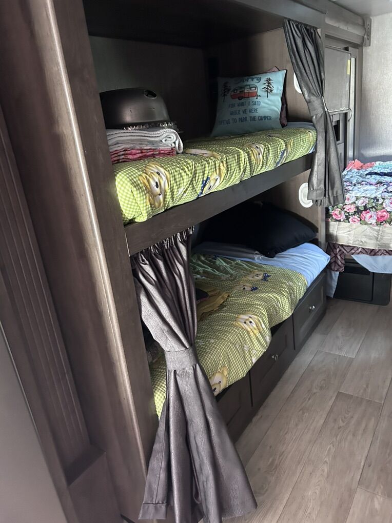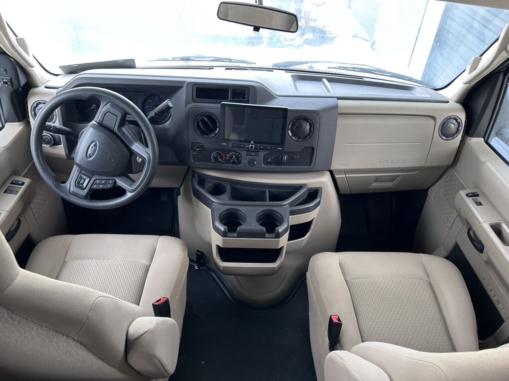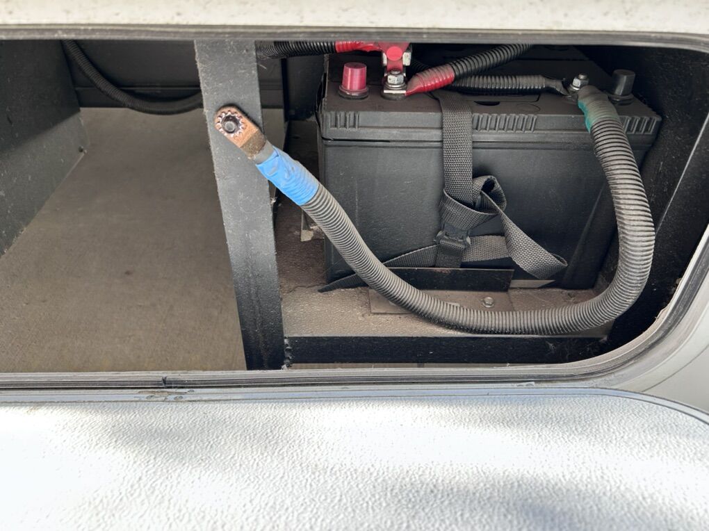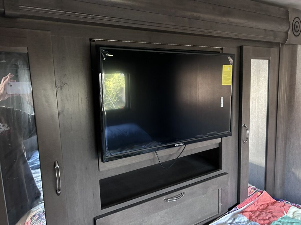 RV has 2 pullouts with awnings, automatic doorstep for entering, 2 solar panels on top roof, air vents, large refrigerator, large microwave and stove, 3 TVs: 1-dining/livingroom, 1-bedroom, and 1-outside for entertainment. Motorhome has plenty of storage space inside and outside. Equipped with a Ford 450E chassis for comfortable driving. This RV motorhome with ONLY 5974 miles is a must see at: