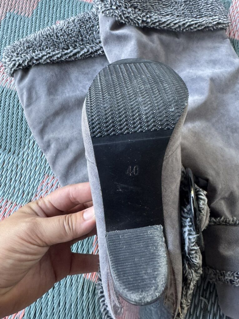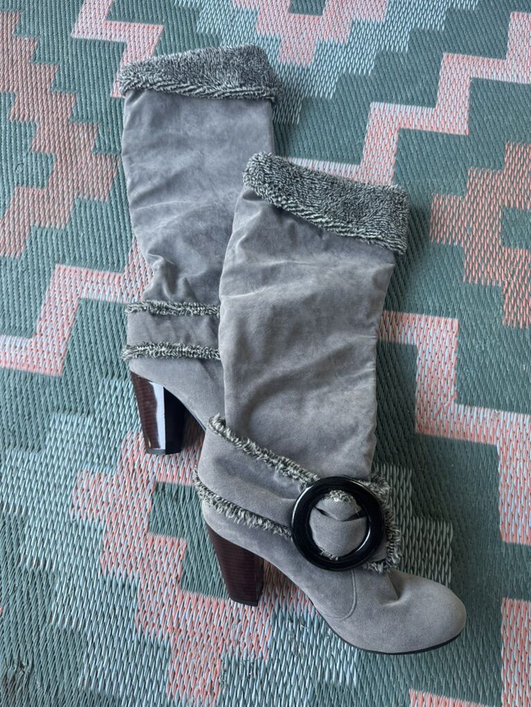 VenmoGray Suede 3.5 inch Block High Heel Knee High Boots