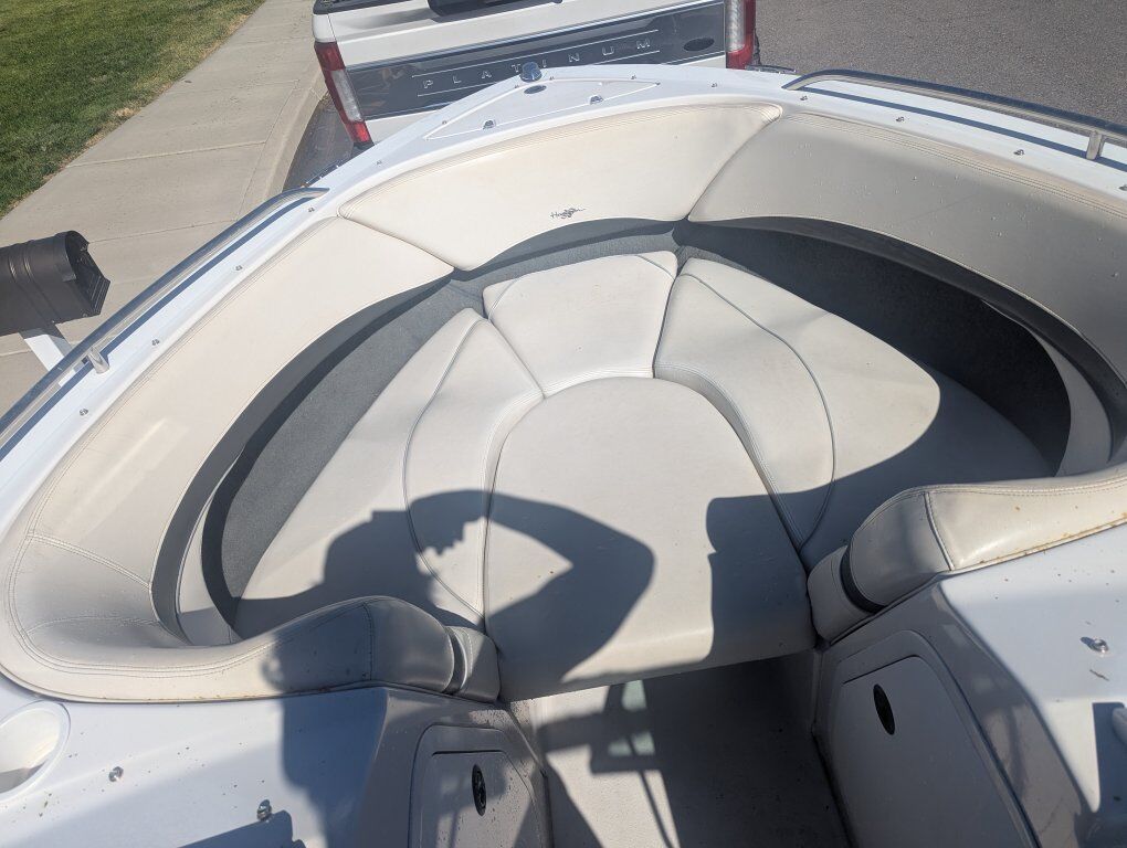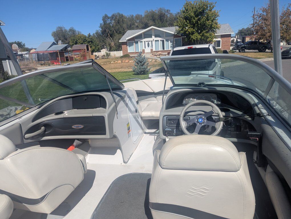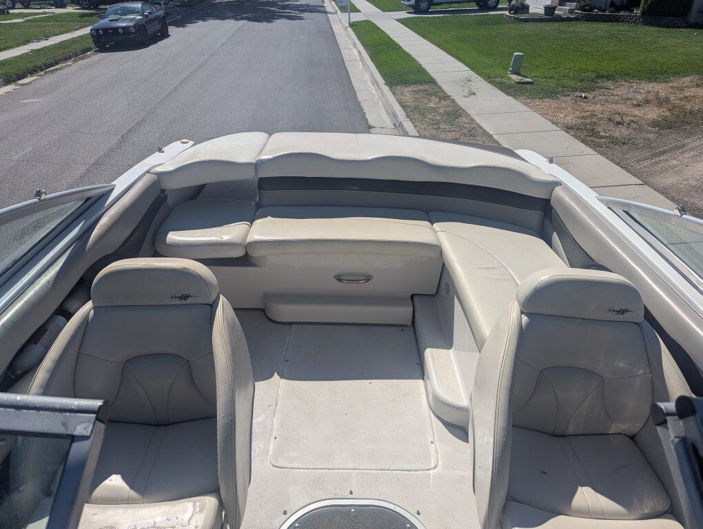 Clean Title 477 Hours Boat has low miles with 5.7 V8 engine fires up first try and runs flawless. Fresh oil change Good tires One wheel does not match the other three. it is same size though. Has a duo prop for awesome holeshot. Has bimi top and is ready to hit the water. I'm including wake boards, tubes and all ropes. Also comes with 5 lifejackets Text works the best for me.