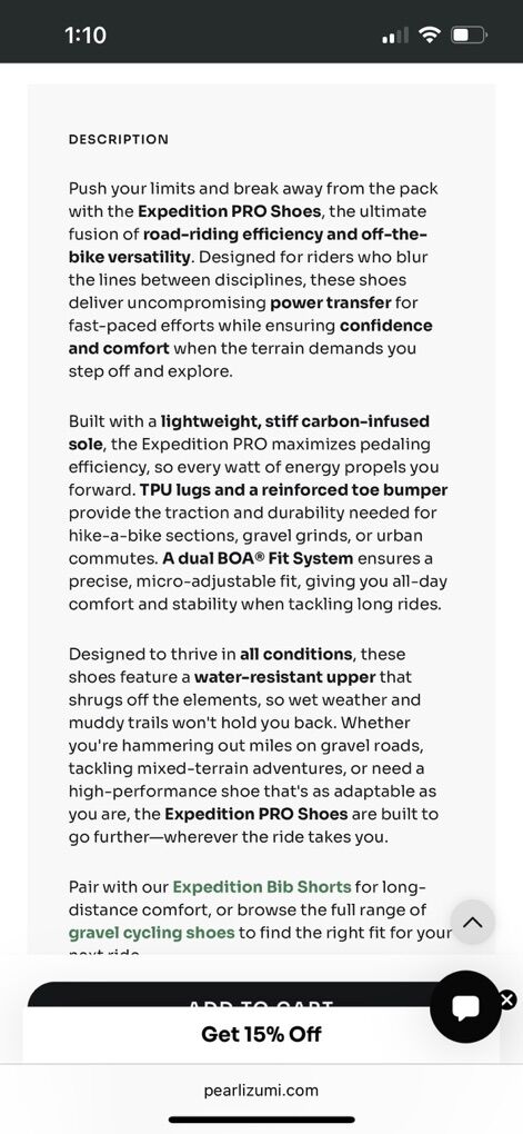 VenmoPearl Izumi says: Our lightest, stiffest and most comfortable off-road shoe featuring BOA closures. Gravel style SPD. Highlights: Lightweight stiff carbon sole, great traction and durability from the TPU sole lugs. List price: $285