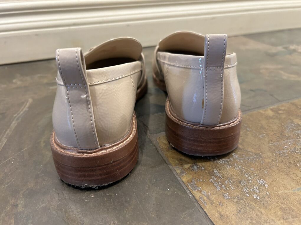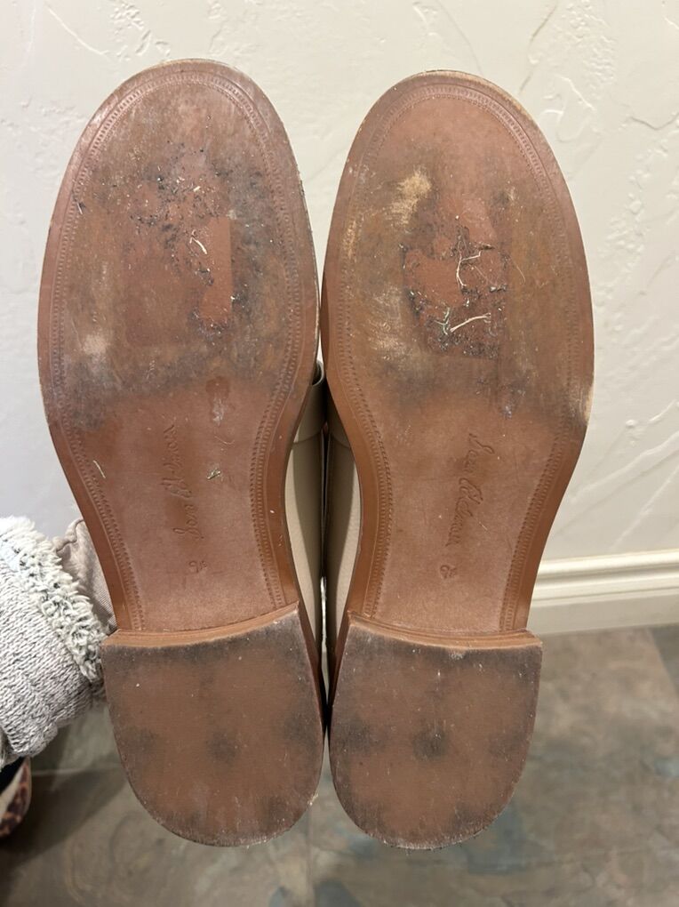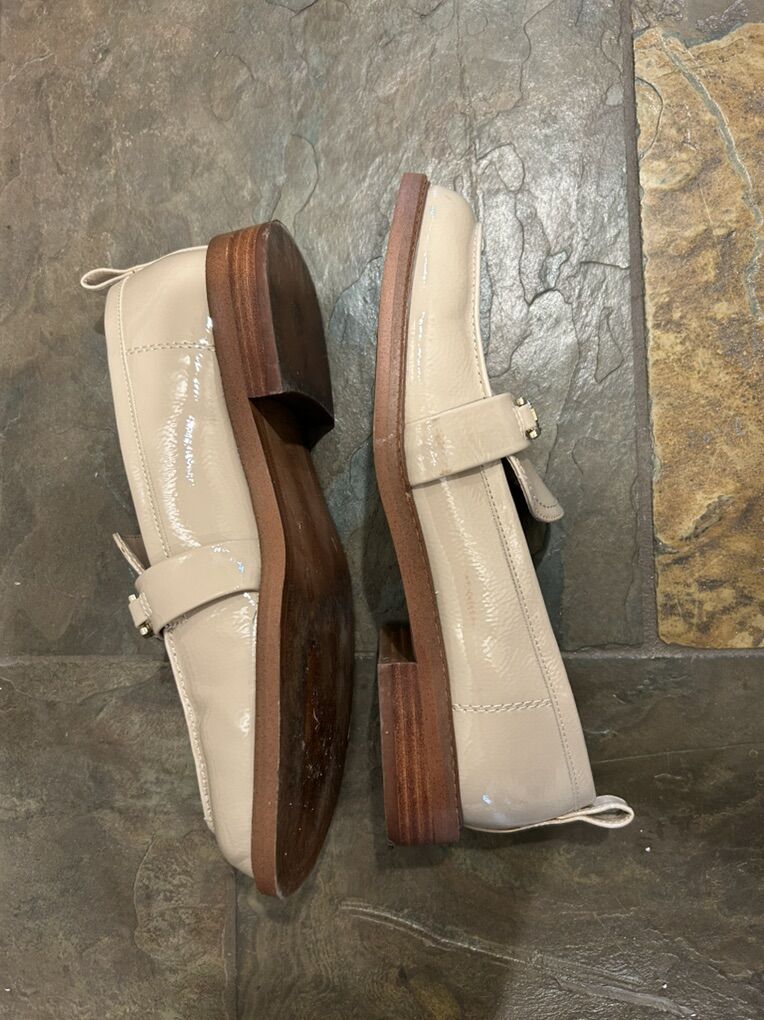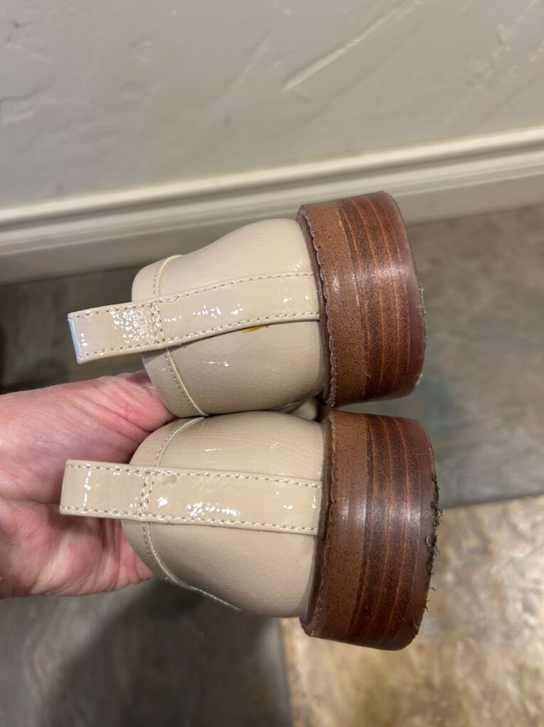 VenmoIn line new condition Sam Edelman Christy patent leather tan beige loafers in women’s size 9.5 9 1/2 with gold and silver chrome links. Brown cognac sole. Perfect heel height. Classic shoe that can be worn year round. Comfortable. Clean smoke free. Cash or Venmo. Pick up in Alpine.