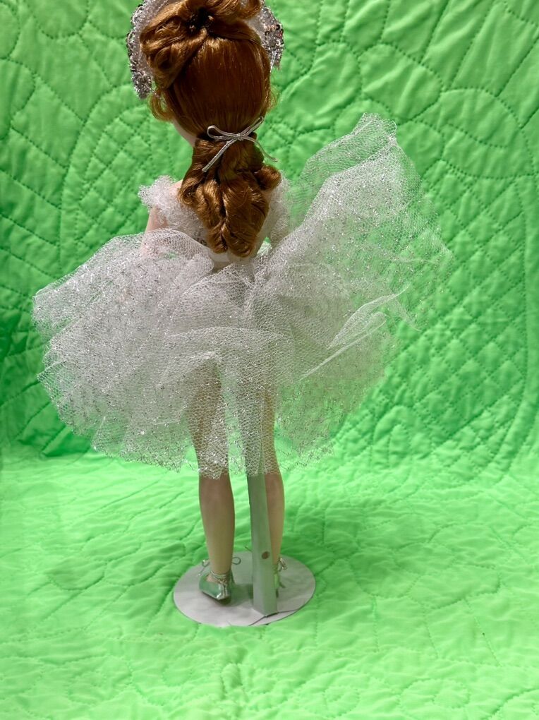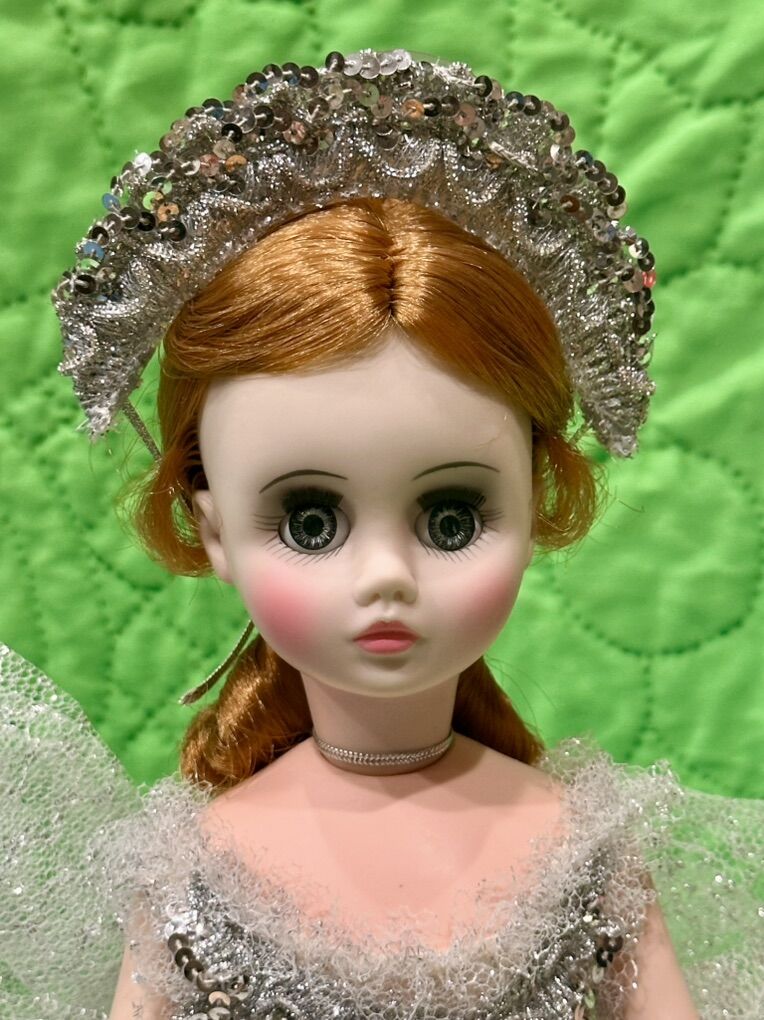 The VTG Madame Alexander Elise Silver Ballerina 17 Doll is a vintage artist doll from the Madame Alexander product line. This girl doll has silver hair piece and comes with a dress, shoes, and tights, making it a complete set for young collectors and doll enthusiasts. Crafted from vinyl, this 17-inch doll exudes a timeless charm and elegance that will surely delight fans of classic dolls and collectibles. DL1 comes with box