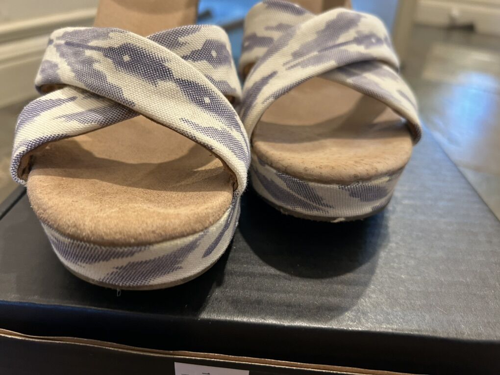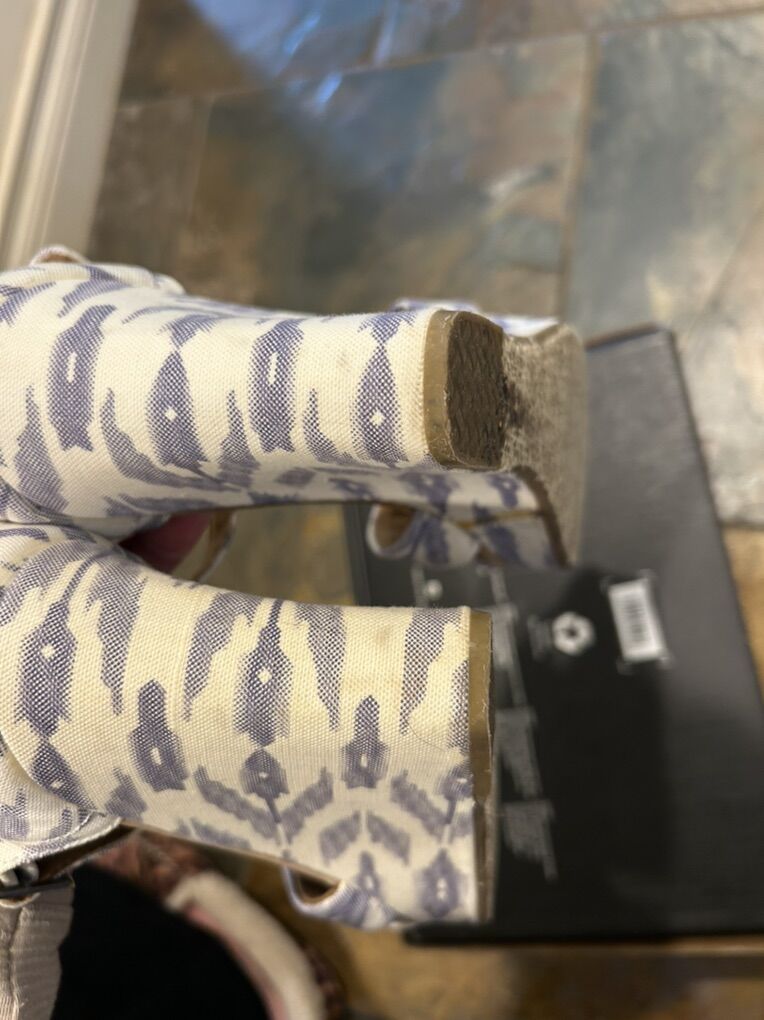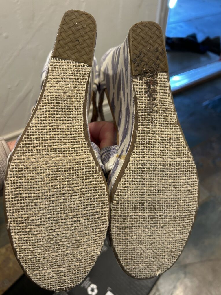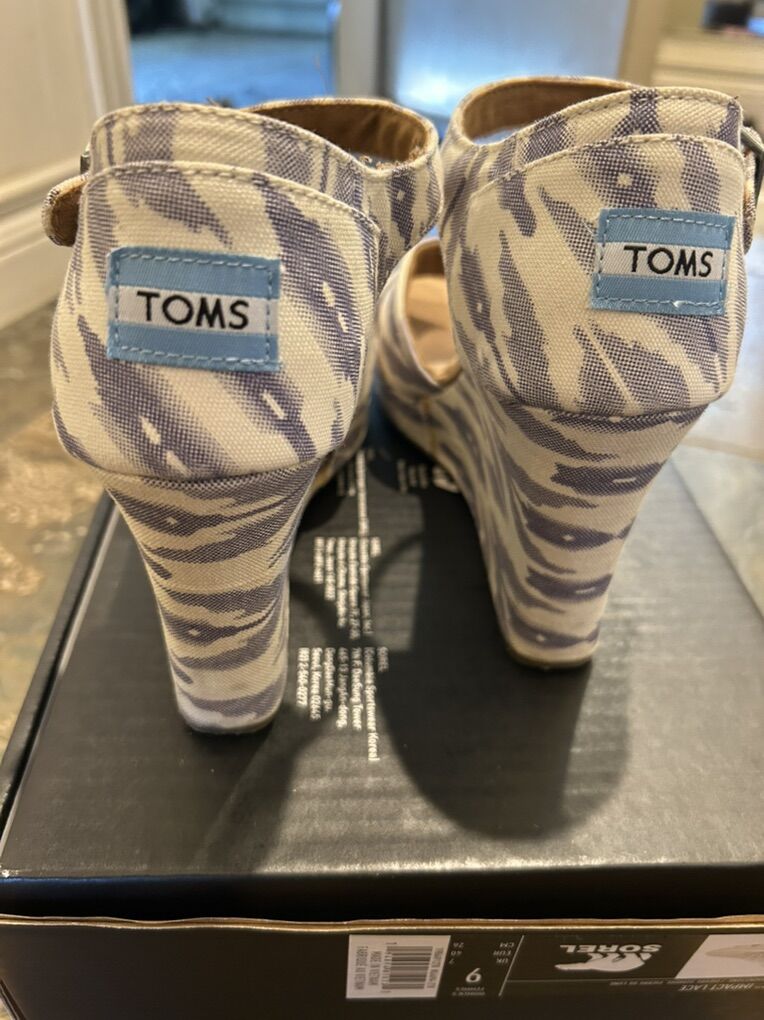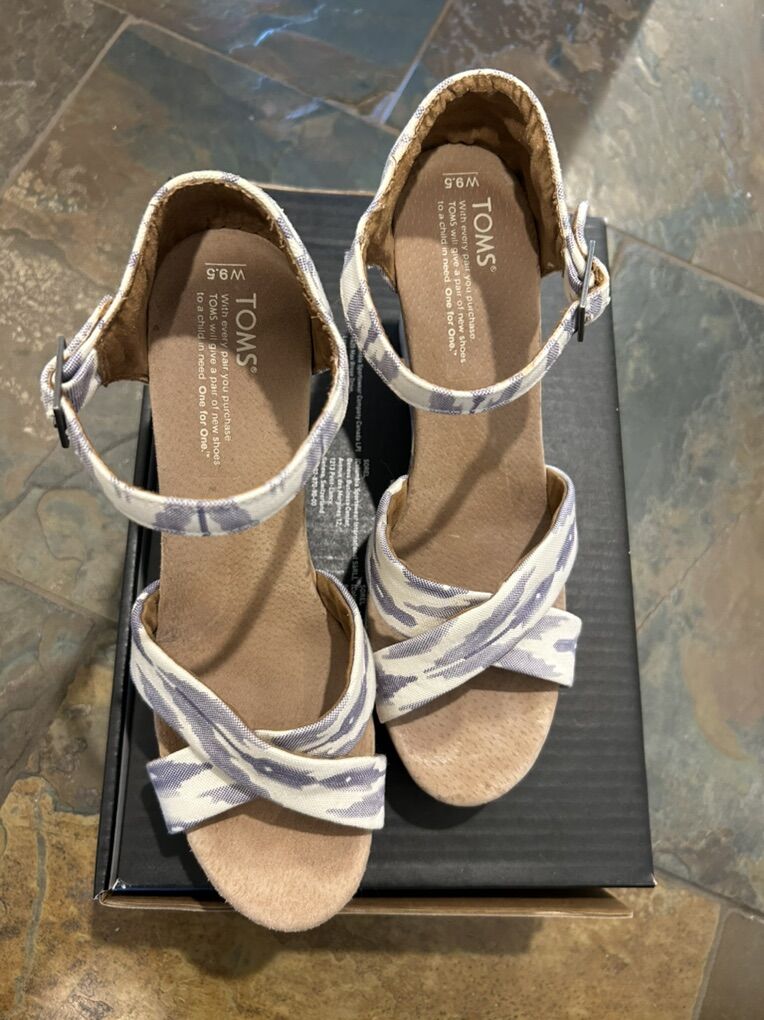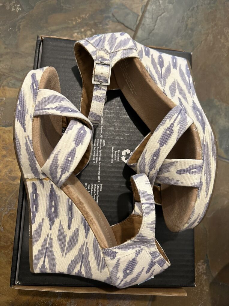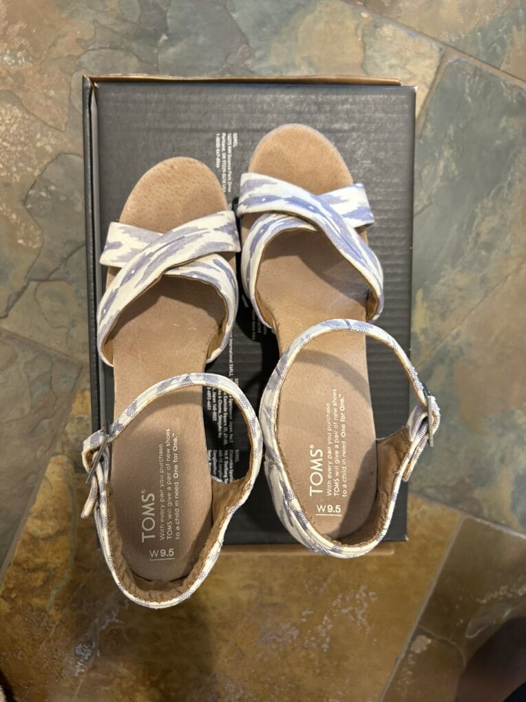 VenmoIn like new condition blue aztec pattern on white fabric sandals from Tom‘s in women’s size 9.5. Criss cross with adjustable ankle strap. These are comfortable and beautiful. Look great with denim or dresses. Clean smoke free. cash or Venmo. pick up in Alpine.