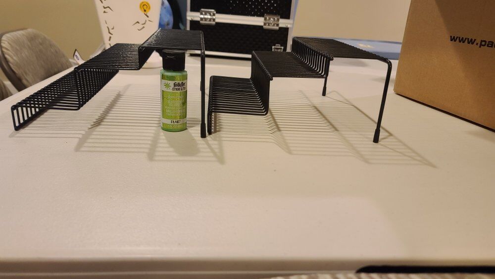 wire spice rack - three levels for optimal storage. paint bottle for size reference, can store under racks as well. great condition