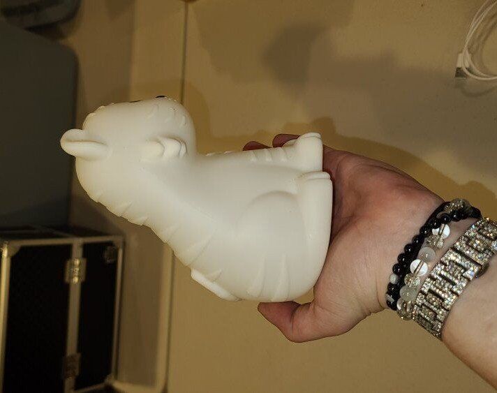 light up silicone tiger - comes with charging cable. it does light up, but I didn't have charging block available