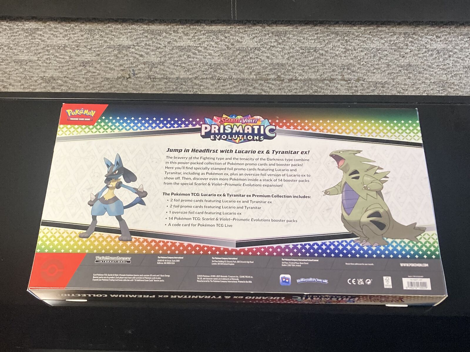 NEW Pokemon TCG Scarlet & Violet Prismatic Evolutions Lucario ex & Tyranitar ex Premium Collection Box - 14 Packs 10-10271-101