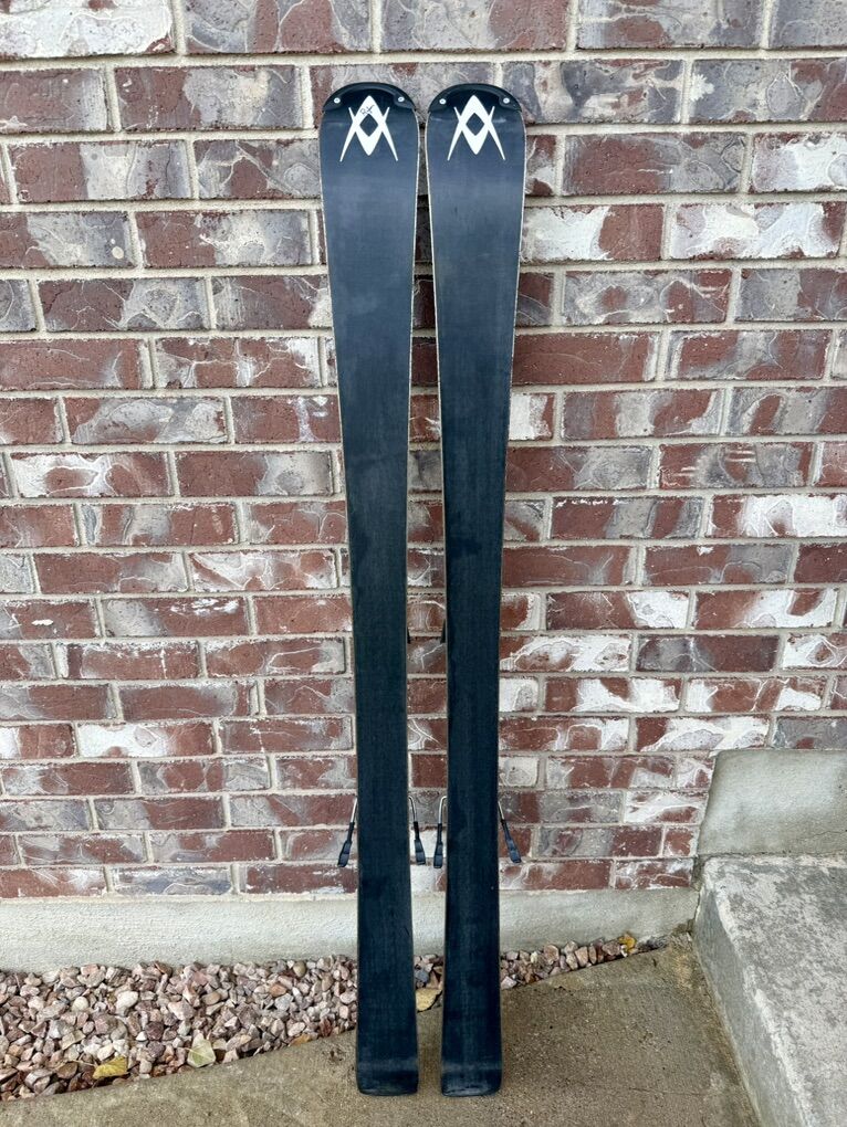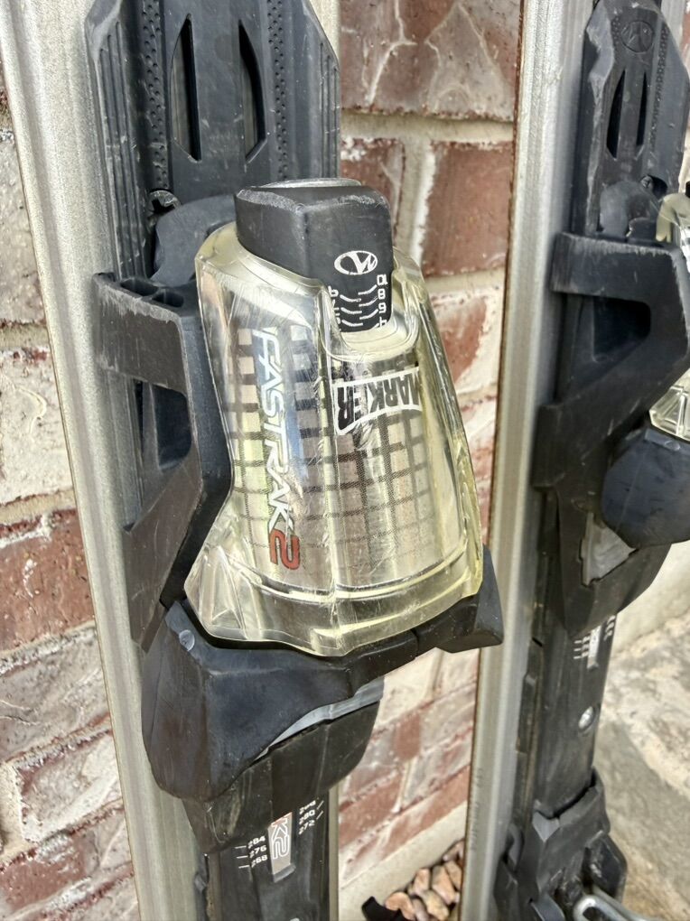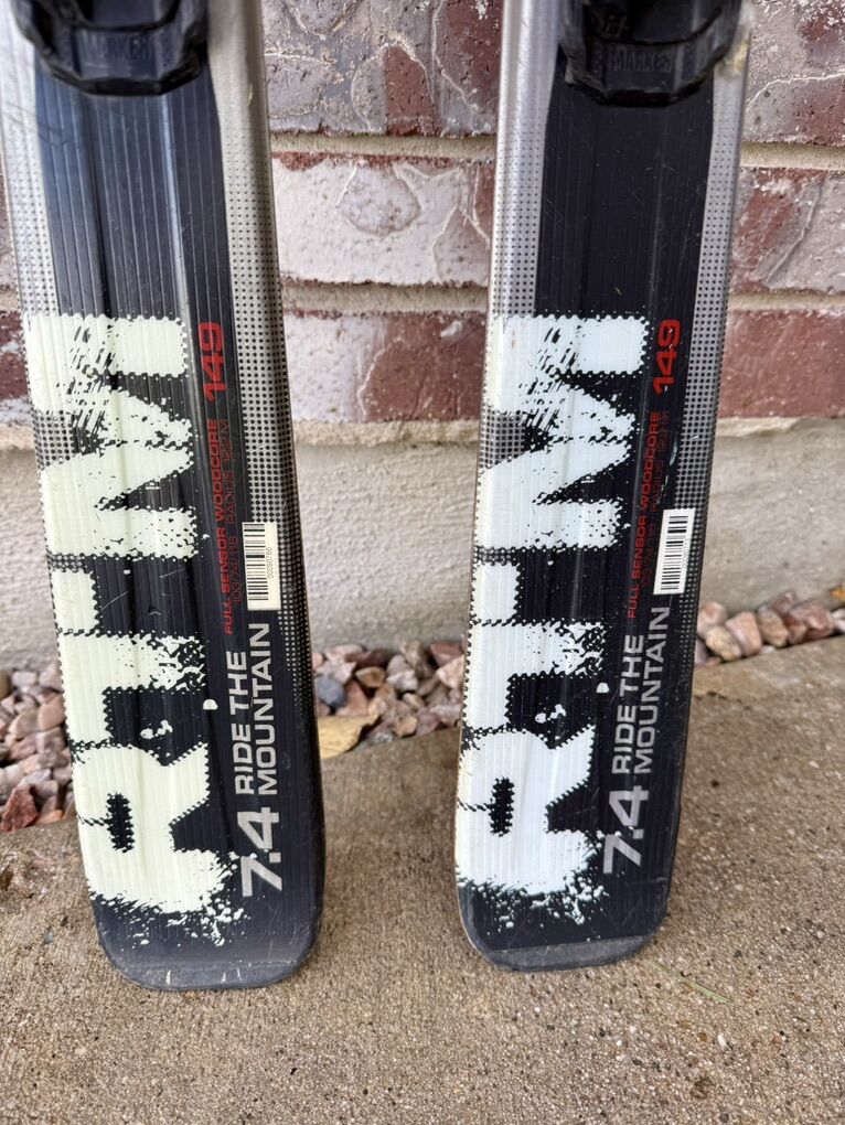 149 cm. Good condition. Adjustable Marker FasTrak 2 bindings. $120.