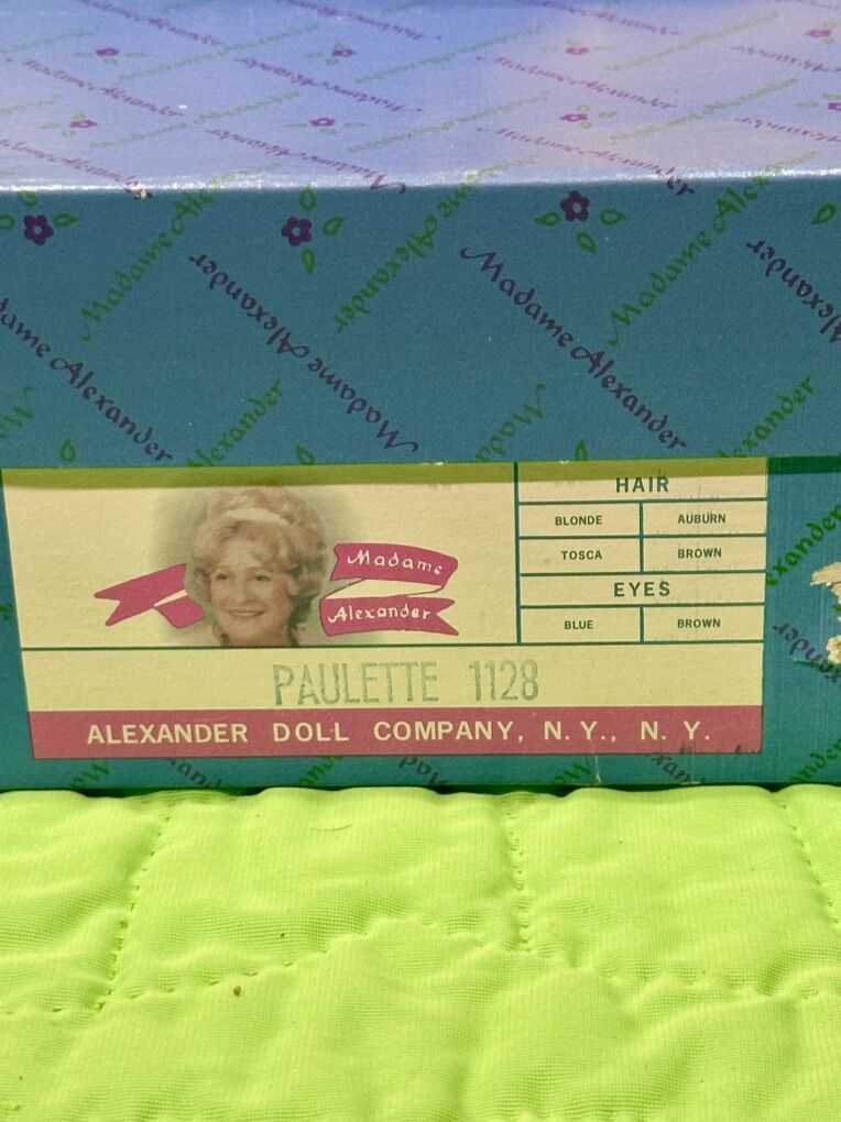 This darling vintage 1980's Madame Alexander Doll named Paulette is from their Portrettes Series. This gal is decked out in a retro French inspired outfit with a plush pink skirt and matching jacket with a lacy white shirt, black velvet purse and beret decked out with a pink plume.