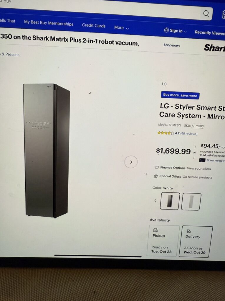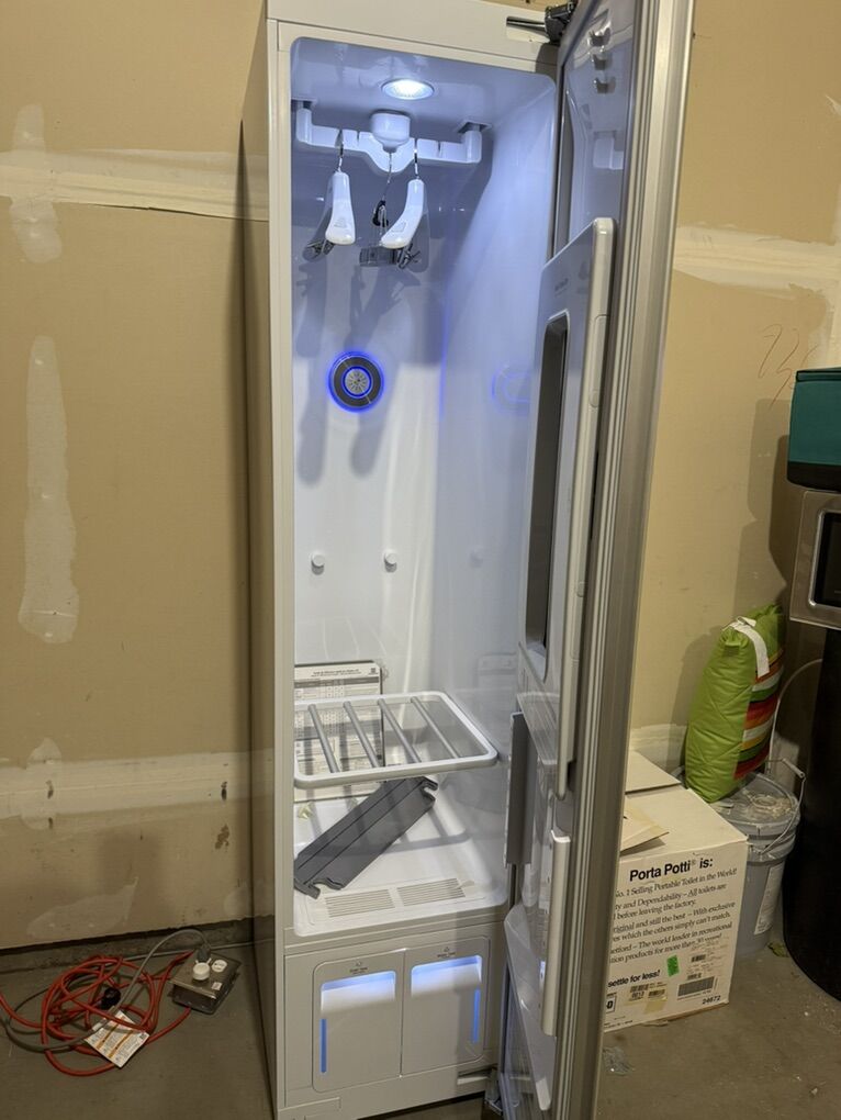 Upgrade your laundry room with the LG Styler. Refresh clothes between cleanings and reduce odors with the gentle power of steam. It even helps sanitize and removes allergens. Certified by the Asthma and Allergy Foundation of America for its superior performance in reducing bacteria and fungi by at least 99%. The LG Styler is the perfect laundry companion, ready to refresh when you are, with just the touch of a button. The elegant and efficient design makes it a perfect fit for any area in your home. Control key LG Styler features from anywhere, at any time, with ThinQ technology. It also works with popular voice-activated devices. The Styler from LG gives a whole new meaning to getting ready. Fits 3 hangers (2 included) + 1 pant hanger (included) for pant crease care.