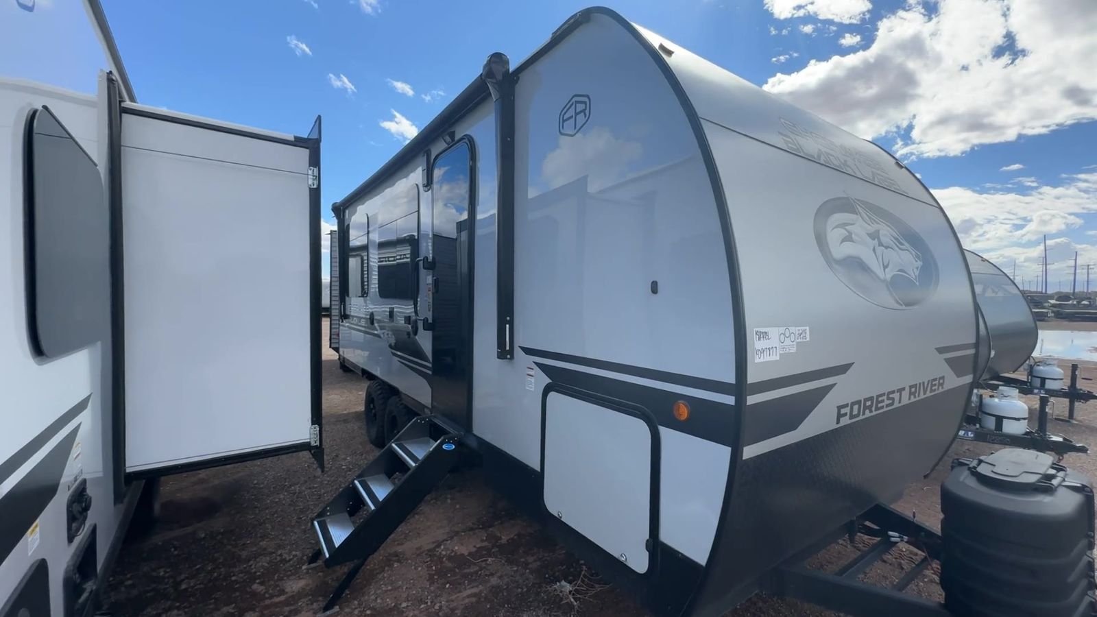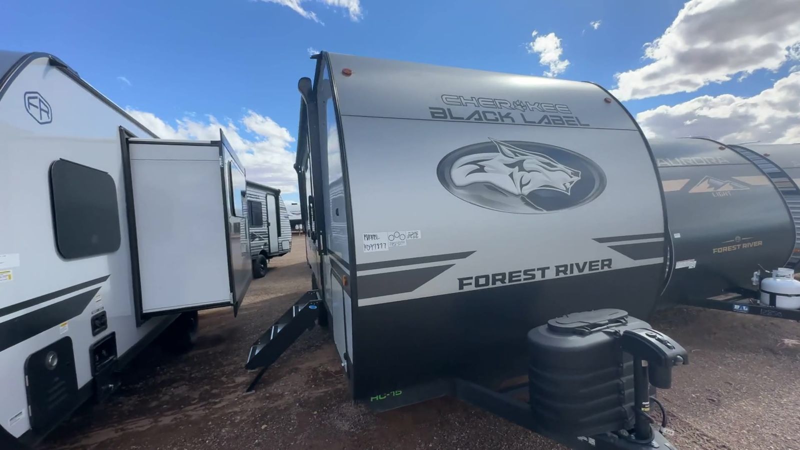 Forest River Cherokee Grey Wolf Black Label toy hauler 18RRBL highlights: Up to 15' 2" Cargo Space Exterior Storage Fold-Down Sofa Queen-Size Bed Full Kitchen You will undoubtedly love this Cherokee Grey Wolf Black Label toy hauler! Because of its ability to have up to 15' 2" of cargo space, you can easily load up the ramp door and head out to your outdoor toy land, and you can bring much more than just your toys since this trailer also comes with exterior storage, a bedside wardrobe, overhead cabinets, a refrigerator, and a kitchen pantry. The full bathroom is another feature that is going to allow you to experience a true getaway since you won't need to find public facilities to use while you're gone, and the USB charging stations will allow you to charge your phone inside while you're outside playing. The Cherokee Grey Wolf Black Label by Forest River feature distinctive features, at-home comforts, and durable construction materials so you can enjoy your RV for years to come, plus they are outstandingly affordable! You can choose between travel trailers, toy haulers, and even fish houses, depending on the camping style you prefer. The Black Label upgrade features fiberglass gel coat walls, frameless windows, upgraded solid surface countertops and more!