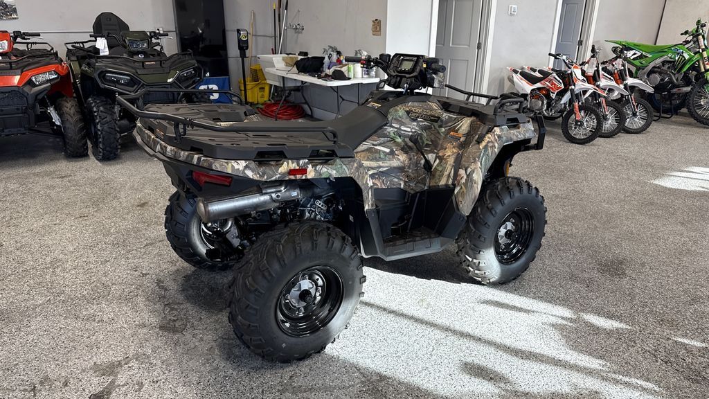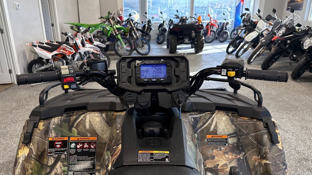 2025 Polaris® Sportsman 570 EPS Polaris Pursuit Camo BETTER THAN EVER Delivering performance, reliability, and legendary ride and handling for added comfort from task to trail. Features may include: STRONG Relentless, job-ready features for the daily grind. Industry-Exclusive Plow Mode Plow Mode makes plowing quick and easy by automatically lowering the plow when shifting into low gear and raising the plow when you shift into reverse gear. Enjoy the ability to remove snow easier than ever before. 44 Horsepower Even more power so you can work harder and let it rip on the trail. 1,350 Lb. Towing Get more done with confidence thanks to a work-ready towing capacity. 2,500 Lb. Winch Pull more weight on the job, or remove obstacles on the trail with a Polaris HD Winch (Trail only). Upgraded Clutch Sealing Take on more trails with confidence with improved clutch airflow to help keep water out. SMOOTH Legendary Sportsman suspension delivers the smoothest ride to absorb bumps of all sizes. Suspension Independent rear suspension delivers more traction and helps you ride over even bigger obstacles. On-Demand AWD Polaris On-Demand All-Wheel Drive delivers instant power when the slightest wheel spin is detected. Best Clearance Equipped with 11.5" of ground clearance to help you travel smoothly over rough terrain. Plush Travel Enjoy a smooth ride on the trail with 9.5" of rear travel. VERSATILE Best-in-class integrated storage and smart features for long days out. Plus, you can customize for your work or play needs with a wide selection of accessories. 570 STANDARD FEATURES: On-Demand All-Wheel Drive 11.5" Ground Clearance Factory-Installed Hitch Receiver 1,350 Lb. Towing Capacity Combined 270 Lb. Front & Rear Rack Capacity 5 Gal. Front Sealed Storage 44 HP Engine RIDE COMMAND+ with Accessory Purchase EPS TRIM INCLUDES: 8.2"/9.5" Front/Rear Suspension Travel 25" Tires with 12" Steel Wheels Front CV Guards Multi-Select Electronic Power Steering Front Trail Bumper Braking System (EBS) Dual Taillights Front & Rear Rack Extenders