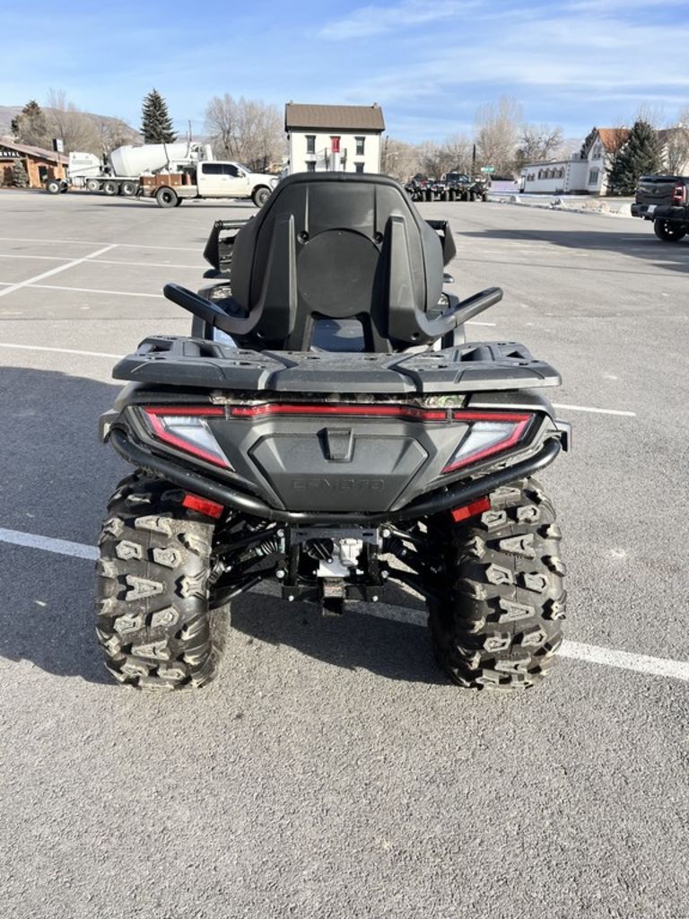 2025 CFMOTO CForce 600 Touring You love to ride. The CFORCE 600 Touring makes it easy to share that love with a comfy passenger seat, liquid-cooled 580cc engine, effortless CVTech transmission, and electronic power steering. Paired with a 58.5" wheelbase, front and rear double A-arm independent suspension, and 10.6" of ground clearance, this might just be the ultimate two-up explorer. Features may include: 580cc Engine The CFORCE 600 Touring is powered by an all-new 580cc, four-valve, EFI, liquid-cooled engine, built on more than 2 decades of continuous innovation of liquid-cooled technology from CFMOTO. Powerful torque with 44 hp output is put to work with the CVTech transmission and centrifugal clutch. Electronic Power Steering An electronic control unit interprets steering input and provides appropriate feedback with respect to speed. At low speeds you get more assistance — less at higher speeds. RideVision™ LED Headlights Brighter and much more durable than halogen, LED lighting offers unmatched visibility and safety, especially in lowlight conditions. LED is less prone to damage from shock, vibration, and temperature changes. Expanded Seating The thick cushioned driver’s seat provides a comfortable ride, while a removable split rear seat also offers a plush ride for a passenger. The ergonomically formed seats optimize security and protection for rider and passenger, while ensuring both enjoy all-day comfort on their adventure.