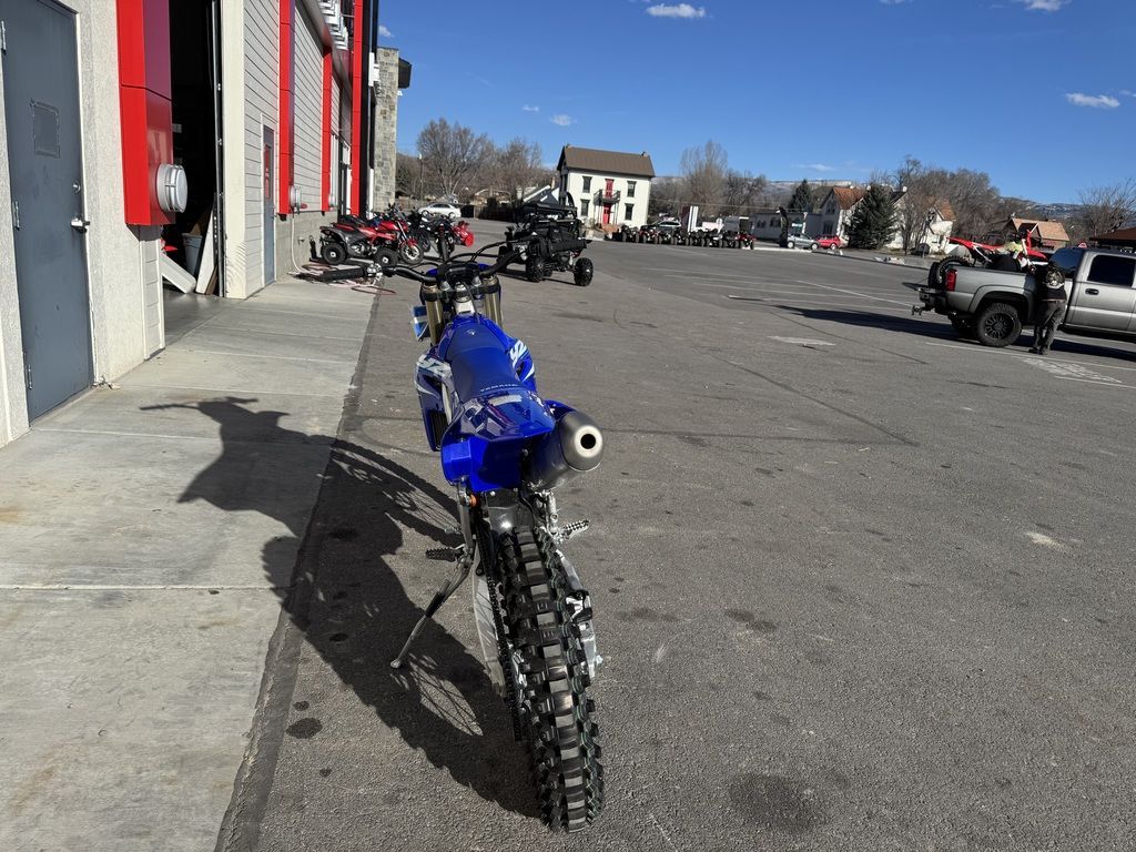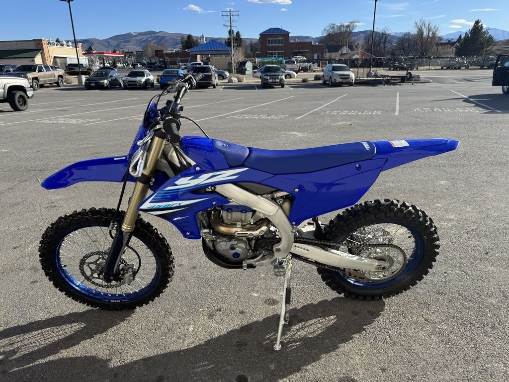 2025 Yamaha YZ450FX THE LIGHTER, SLIMMER, FASTER WOODS RACER The premier XC racer built to compete straight out of the box, the all-new YZ450FX takes off-road performance to the next level. Features may include: TOP FEATURES The Ultimate Open Class Cross Country Racer Based on the benchmark-setting YZ450F motocrosser, the YZ450FX is designed to dominate cross country competition. Its lightweight, compact chassis, powerful four-stroke engine, exceptional rider ergonomics, and Yamaha's groundbreaking next-generation Power Tuner app all carry over directly from the class-leading YZ450F. Additional modifications tailored toward enhanced XC performance include a wide-ratio transmission, larger fuel capacity, 18-inch rear wheel, side stand, skid plate, revised ECU and suspension settings, along with a 10mm lower seat height for increased maneuverability in challenging off-road conditions. High Performance 450cc Four-Stroke Engine The YZ450FX's thrilling liquid-cooled DOHC four-stroke engine is renowned for its broad power character and ease-of-use, with ECU settings tailored to enhance both low-end tractability and top-end power. Industry-Leading Yamaha Power Tuner App Like having factory team support in your pocket, Yamaha's groundbreaking next-generation Power Tuner App is even more user-friendly with an intuitive "Simple Tuning" slide bar for quick engine mapping selections, three-level Traction Control, a lap timer, and helpful engine and suspension tuning guides. Best of all, it's free-of-charge. ENGINE Powerful 450cc Four-Stroke Engine Featuring a reversed cylinder head layout, forged aluminum piston, 39 mm titanium valves, lightened crank assembly and dry sump lubrication, the YZ450FX's advanced DOHC four-stroke engine is light, compact and world renowned for its incredibly broad pulling power across the entire rev range. Additionally, ECU settings are tailored to suit the specific needs of cross country and enduro competition. Industry-Leading Yamaha Power Tuner App The free-of-charge Yamaha Power Tuner App brings the power of the GYTR® Power Tuner to an iOS® or Android® device, allowing owners to adjust air/fuel mixture and ignition timing, log race set-up information, and monitor a range of data such as maintenance and system diagnosis, engine run time, and more. Yamaha's next-generation Power Tuner App is more user-friendly with intuitive features including a "Simple Tuning" slide bar for engine mapping, Traction Control tuning, lap timer, and helpful engine and suspension tuning guides. Traction Control System Controlled through the Power Tuner App, the Traction Control System communicates wheel slip to the ECU, tuning the engine to maintain ideal rear wheel traction. Three levels can be selected: HIGH, LOW or OFF. CHASSIS/SUSPENSION Aluminum Bilateral Beam Frame Striking the perfect balance of precise cornering performance and handling stability, the redesigned aluminum bilateral beam frame consists of more than 10 different aluminum components welded together with YZ450FX-specific XC-tuned engine mounts. The result is a better handling machine with lighter feel, improved bump absorption and increased traction, allowing the rider to enter corners with greater confidence and more line choices. Class-Leading Suspension The industry-leading, fully adjustable KYB® coil spring-type fork with speed-sensitive damping provides exceptional balance between handling and bump absorption, and now features a new hand operated compression clicker for toolless adjustments. The linkage type rear suspension uses a KYB® shock with specially-tuned damping characteristics to match the YZ450FX chassis.